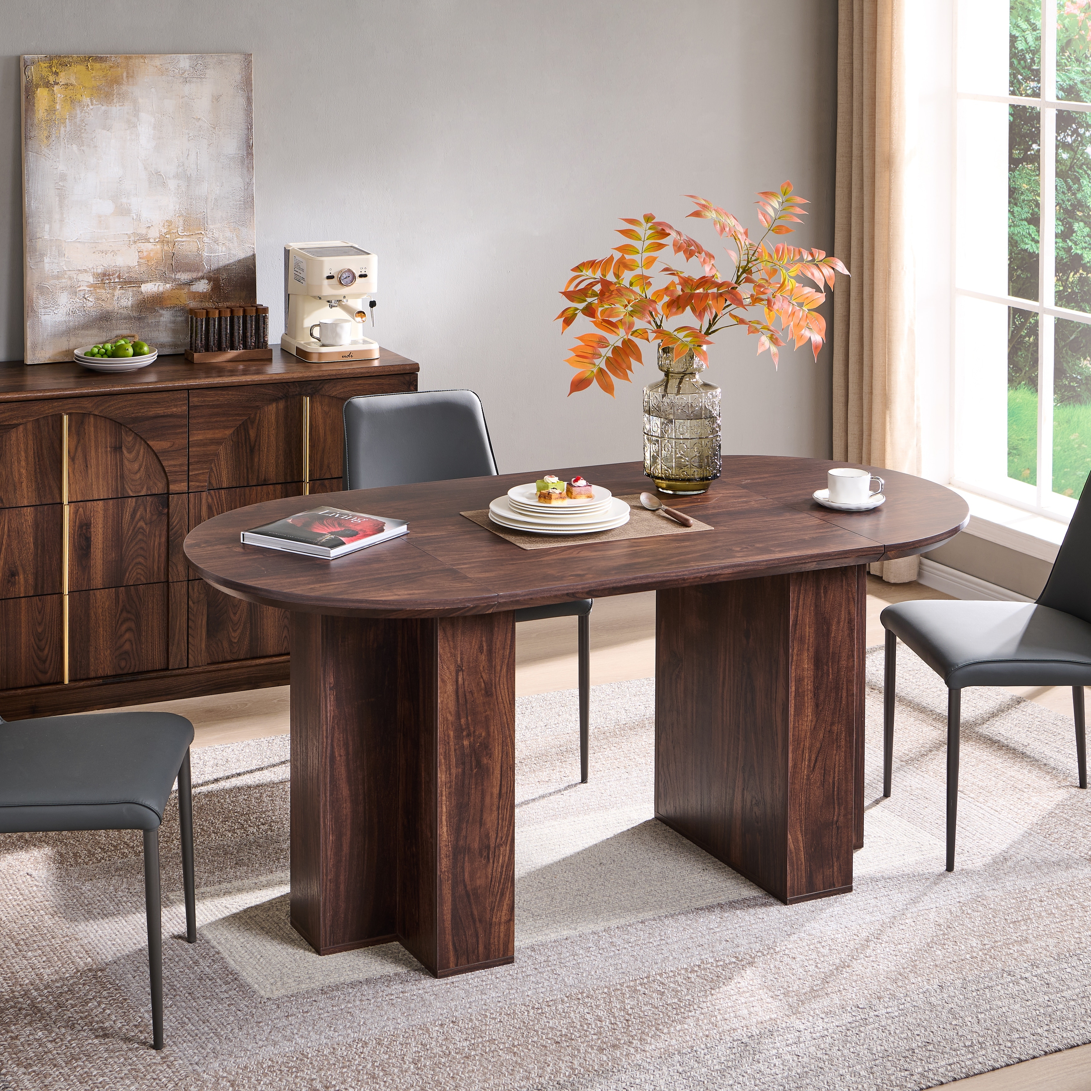 Modern 63" Oval Dining Table, Kitchen Table with Sturdy T-Shaped Base