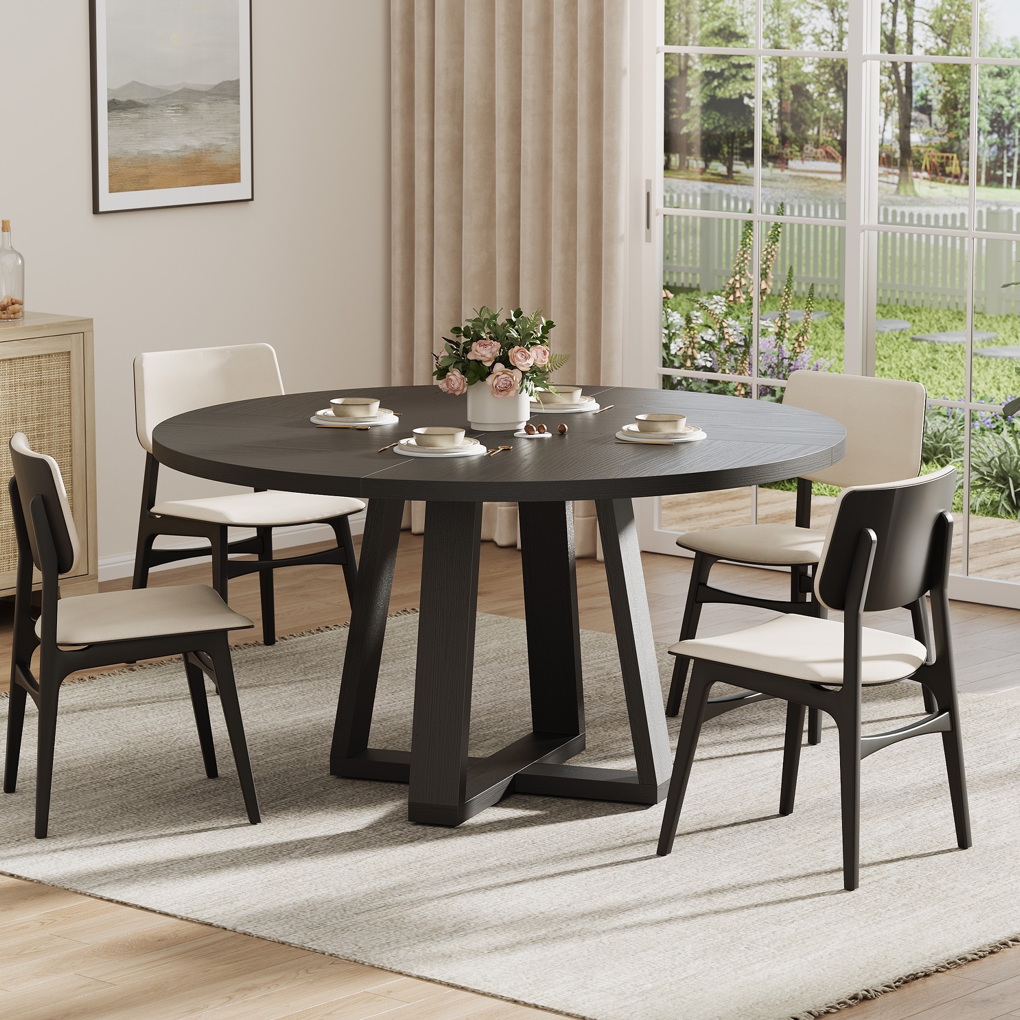 Round Dining Table for 4-6 People, 47" Dining Room Table with Wooden Cross Pedestal Base, Modern Kitchen Table