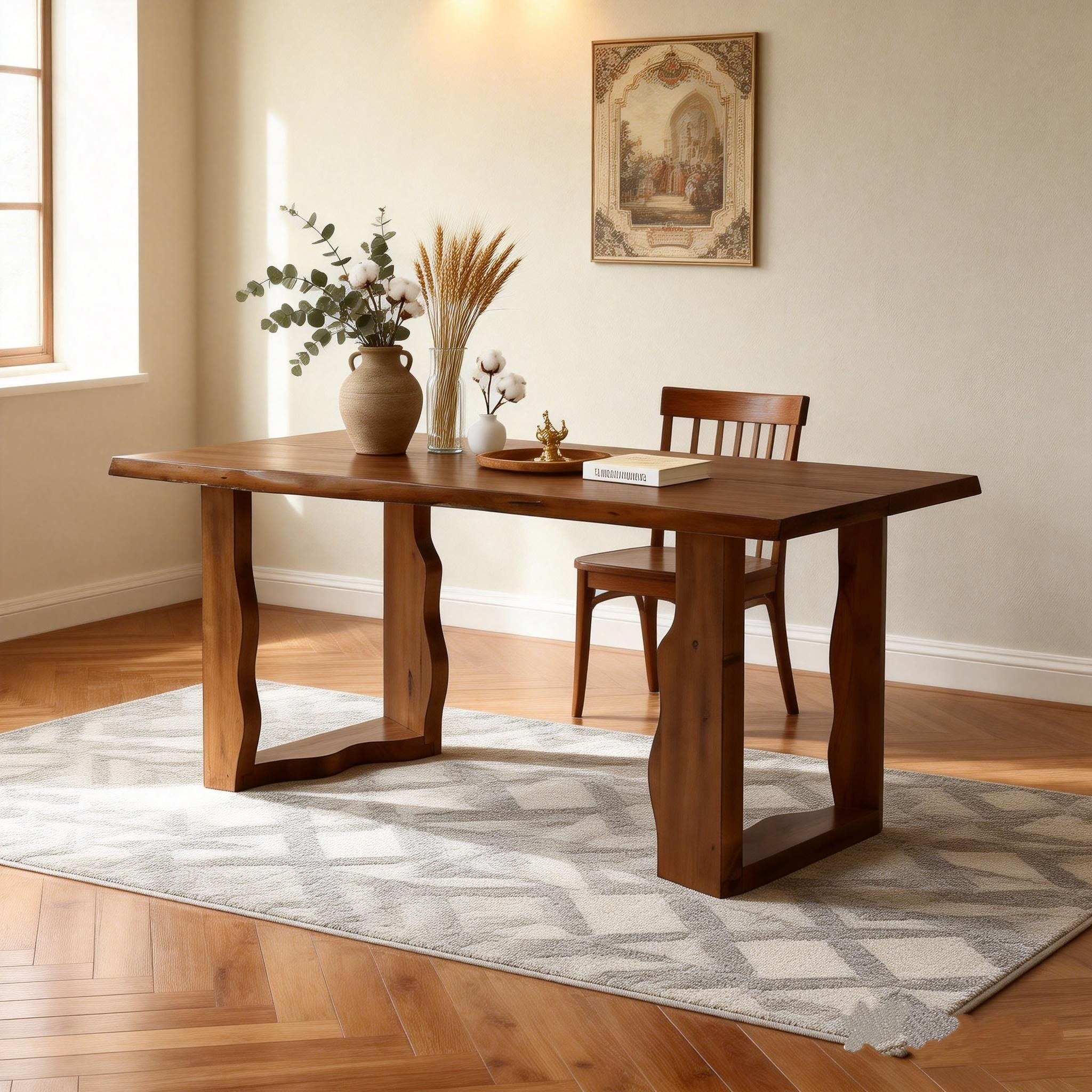 Farmhouse 63-Inch Solid Wood Dining Table
