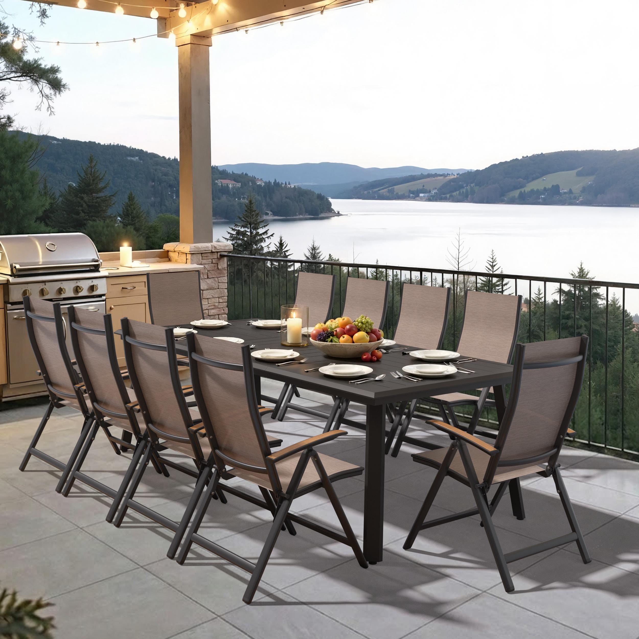Pellebant Outdoor Aluminum Dining Table with Umbrella Hole for 8-12 Person