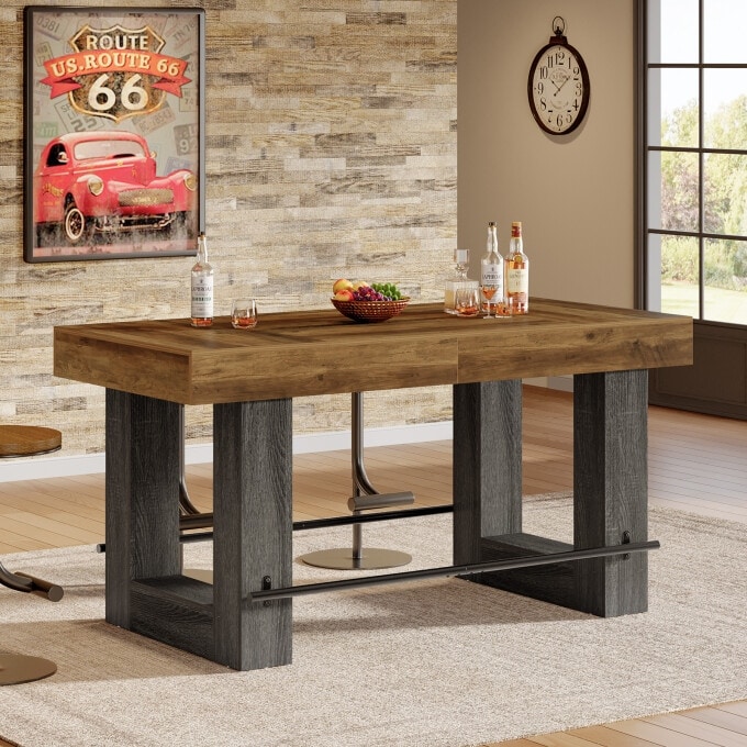63-Inch Counter Height Bar Table, Industrial High Top Dining Table