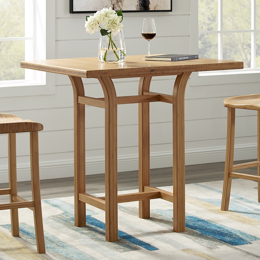 Vail 36 In. Square Solid Wood Top Accent Dining Table with Black Stainless Steel Square Pedestal Base for Dining Rooms or Patios