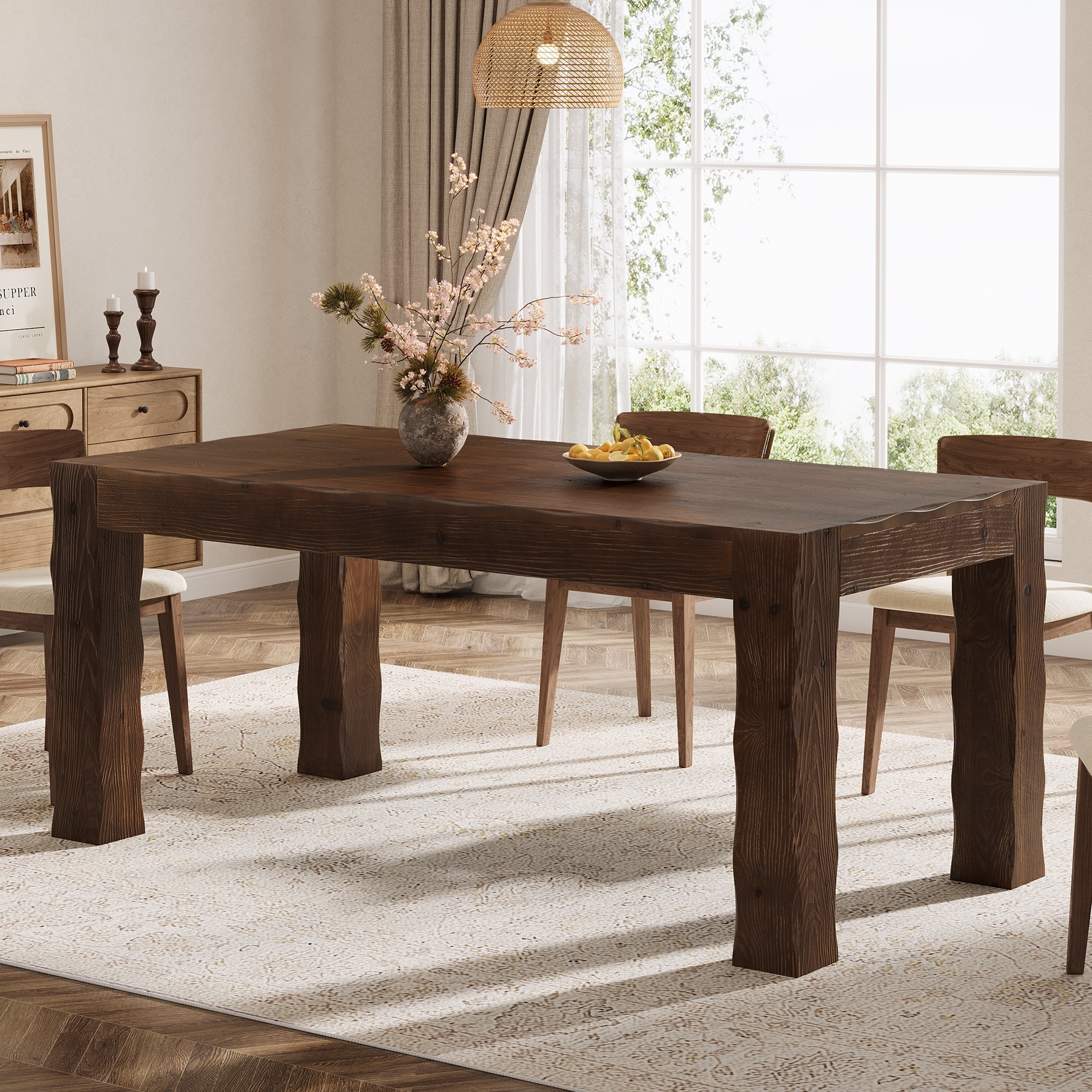 70.87" Long Farmhouse Dining Table for 6-8 People, Rustic Wood Kitchen Table with Sturdy V-Legs for Family Gatherings