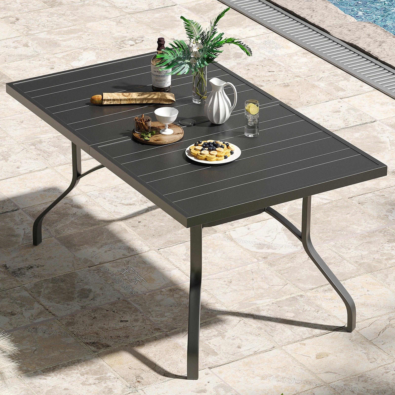 Outdoor Dining Table 60"x35", Rectangle Patio Dining Table with 1.57" Umbrella Hole, Outdoor Metal Furniture