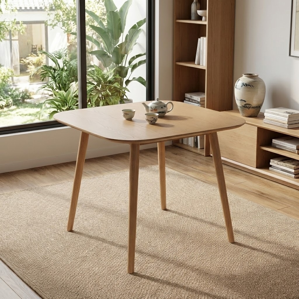 Mid-Century Modern Square Dining Table with Tapered Legs, 35" Rubberwood & MDF Table for Dining Rooms, Kitchen