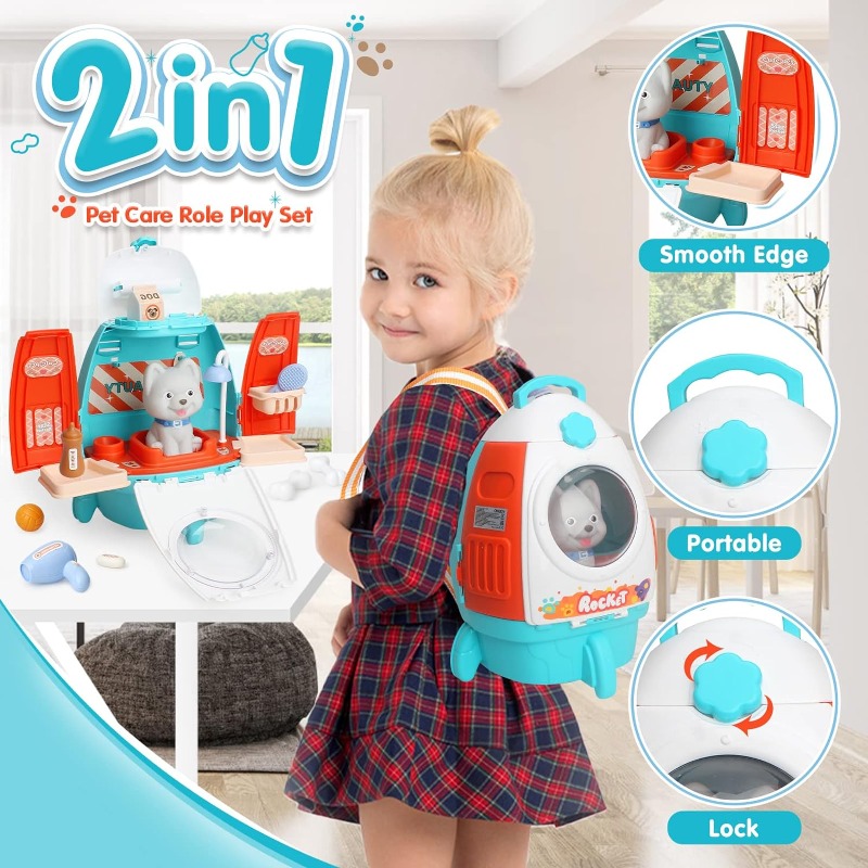 Pet Cat Dog Carrier Backpack Toy, 18PCS Pet Care Playset,Vet Clinic And Doctor Kit For Kids, Pet Veterinarian blue
