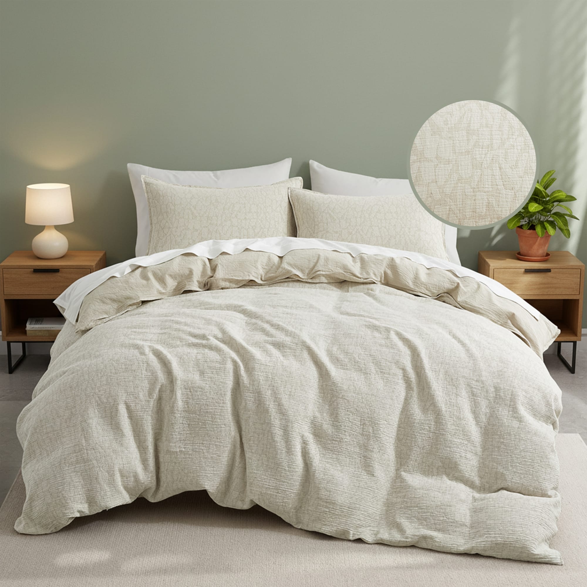 Floral Jacquard Cotton Linen Blend Duvet Cover Set, Bedding Set with Pillowcases