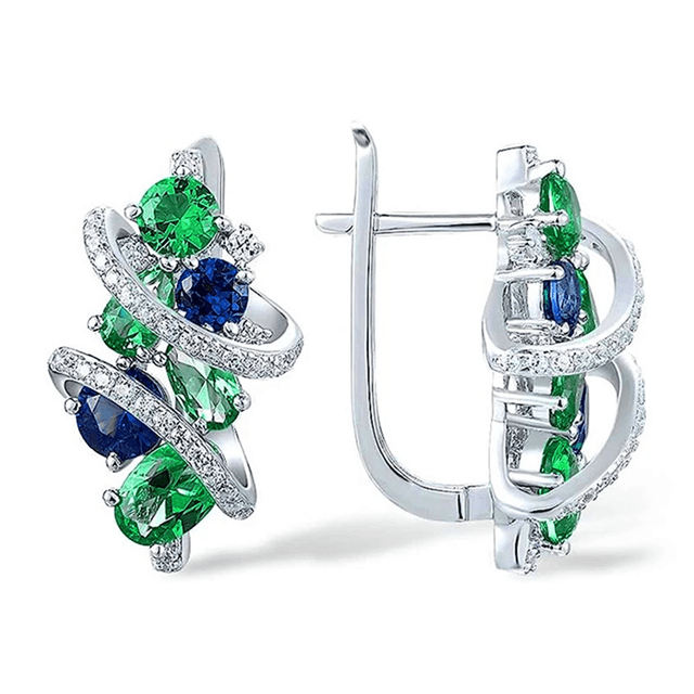 Stylish Geometric 925 Sterling Silver Earrings With Shiny Green AAAA Zircon For Women Elegant Party Jewelry Gem Color: KISS0120 E