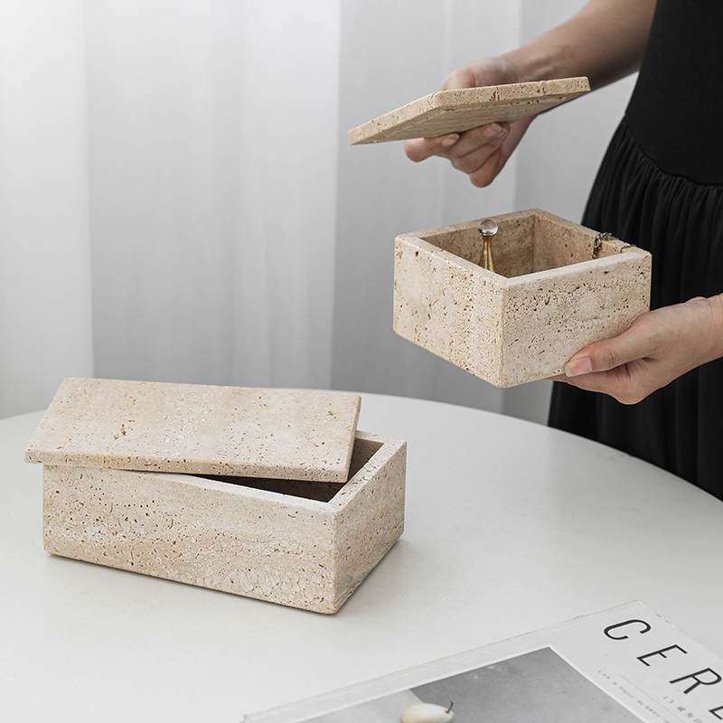 Modern Natural Travertine Storage Box, Elegant Cover Design For Home, Hotel, Desktop Decoration type C