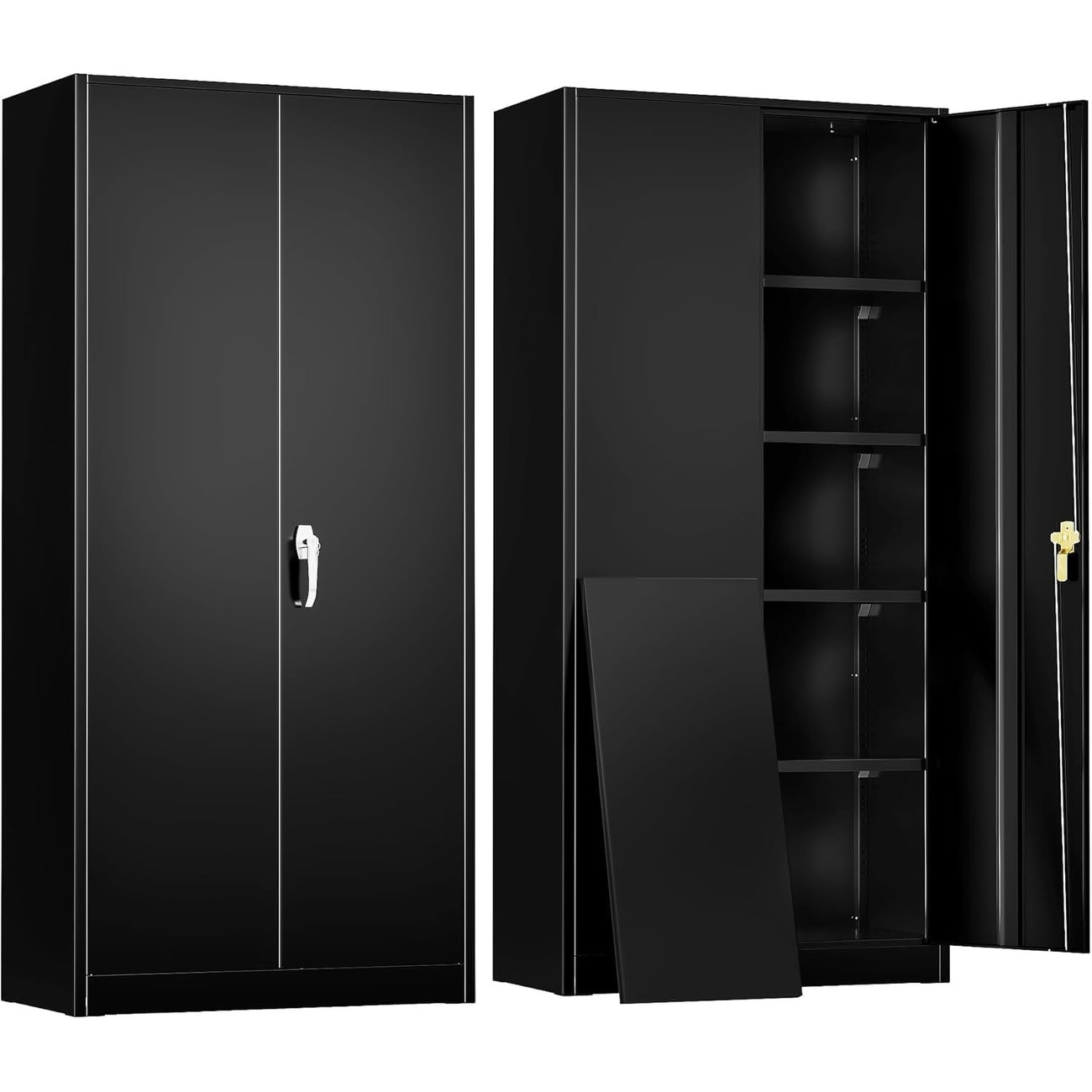 71-Inch Lockable Metal Storage Cabinet with 2 Doors and 4 Adjustable Shelves for Office, Home, Garage, Gym, and School