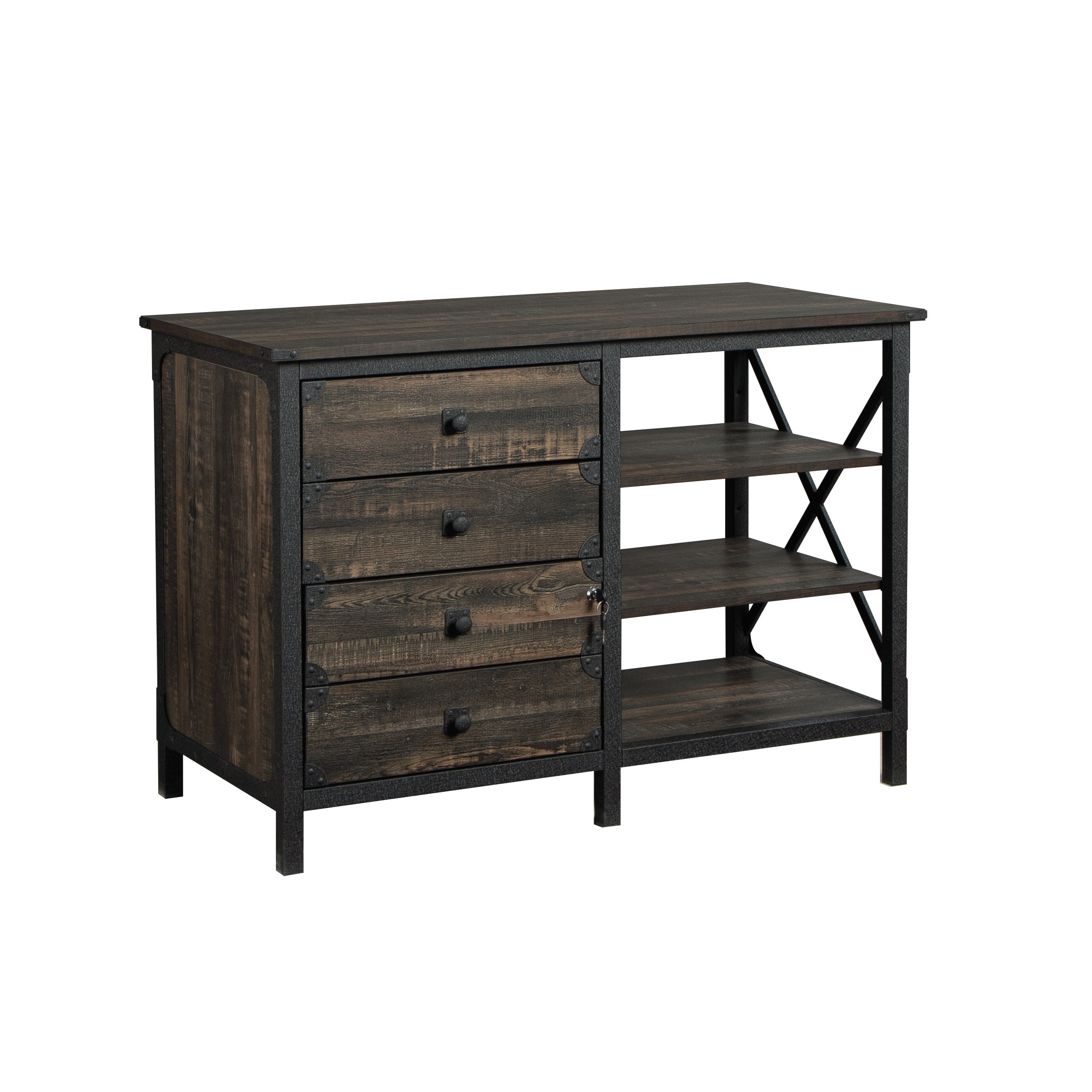 4-Drawer Horizontal Metal File Cabinet with Lock - Lateral Filing Cabinet Fits A4/F4/Letter/Legal Size for Office Home Black
