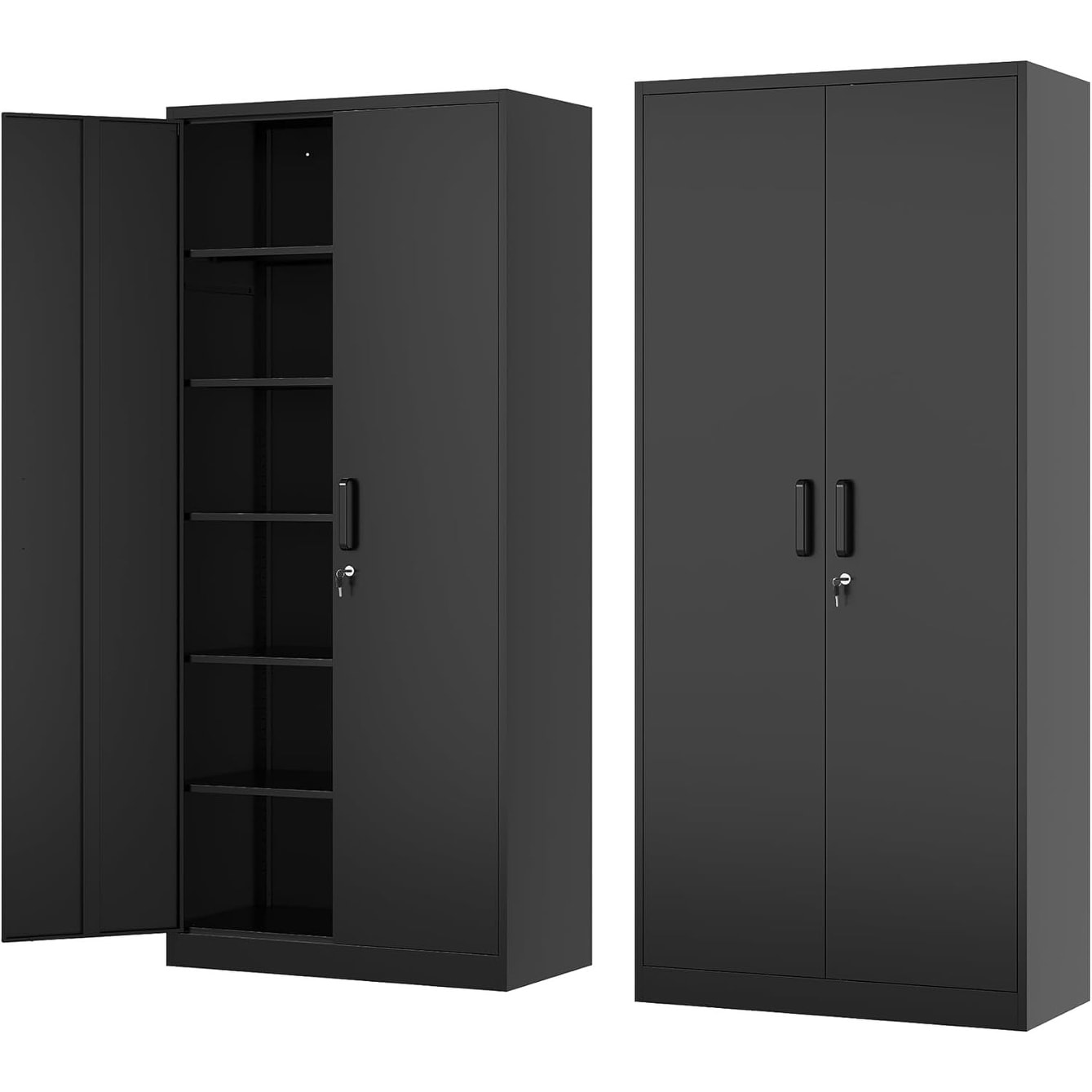 72'' Tall Steel File Cabinet with Lockable Doors, Adjustable Shelves, Black