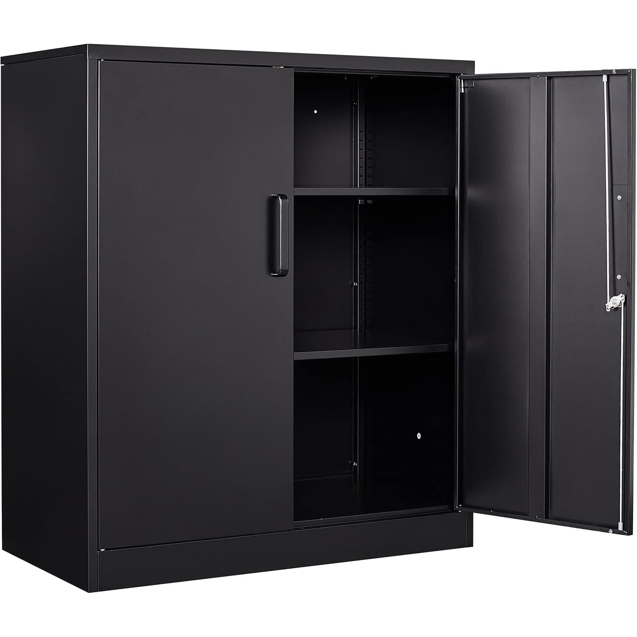 Metal Storage Cabinet with 2 Adjustable Shelves, Locking Steel Cabinet for Office, Kitchen, 36 inches Height