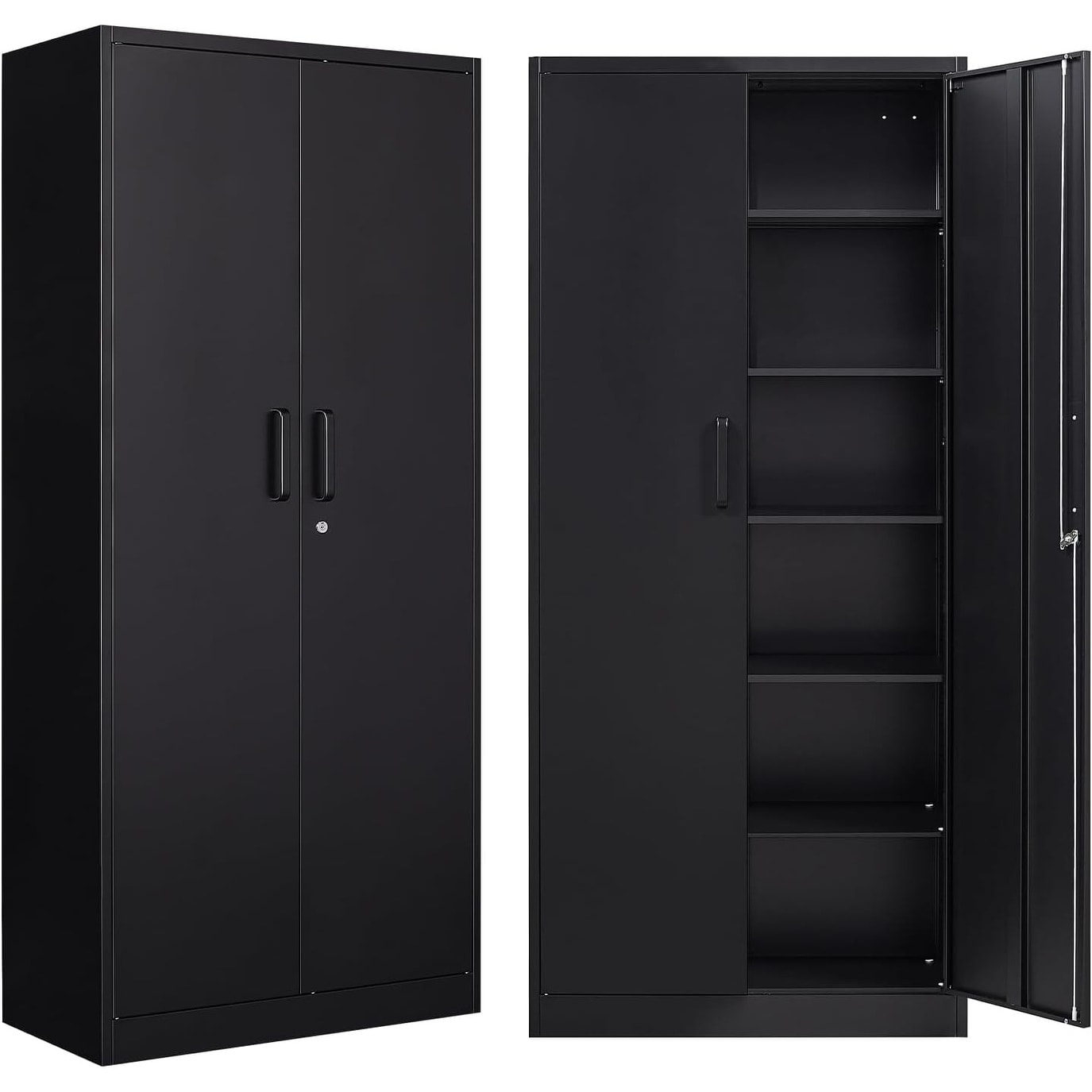 71 Inch Lockable Steel Storage Cabinet with 5 Adjustable Shelves for Garage, Office, and Home