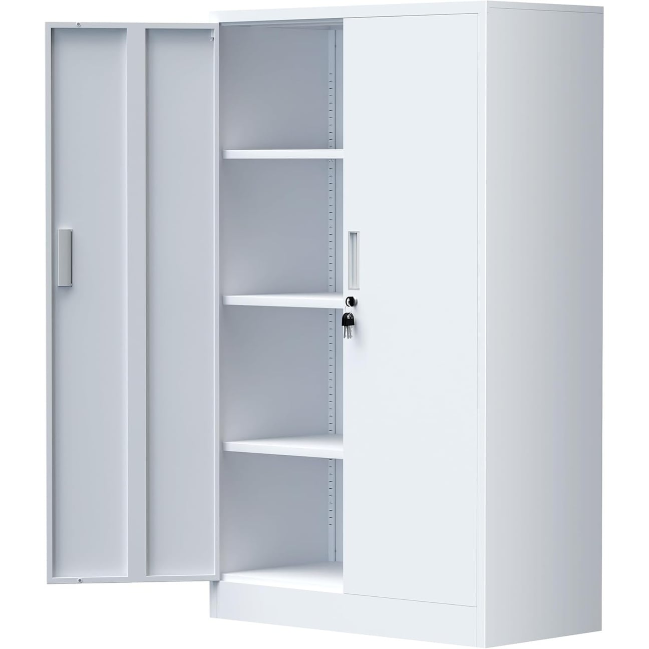 53.5-Inch Tall Metal Storage Cabinet with Locking Doors and Adjustable Shelves (White)