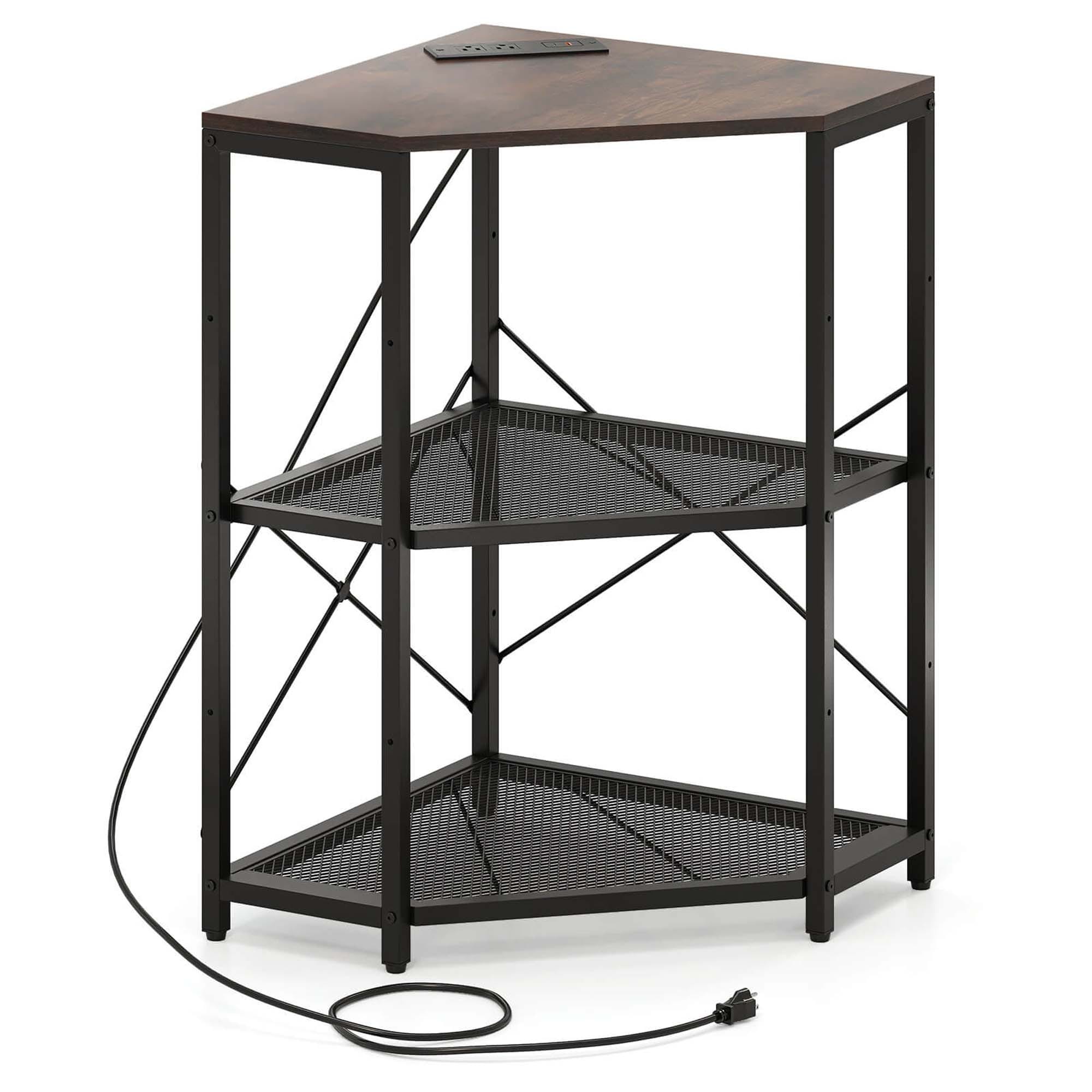 Corner Printer Stand w/Outlet & 3-Tier Rack w/Adjustable Mesh Shelf