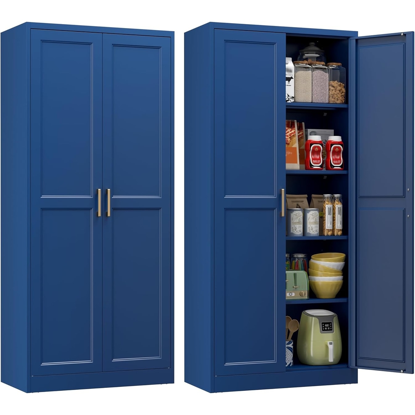 71 Inch Tall Metal Pantry Cabinet with Adjustable Shelves, Navy Blue, Freestanding Food Storage Cabinet for Kitchen, Living Room