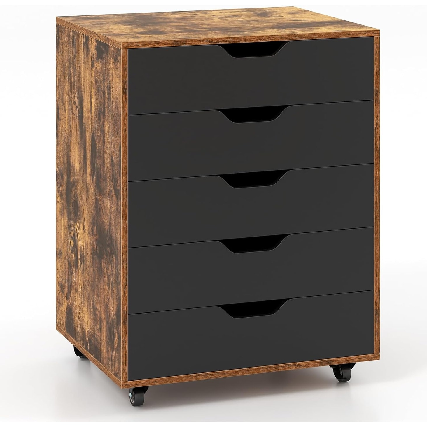 5-Drawer Mobile Storage Cabinet with Wheels, Under Desk Rolling Lateral File Chest, 19.5 x 16 x 25.5 Inches