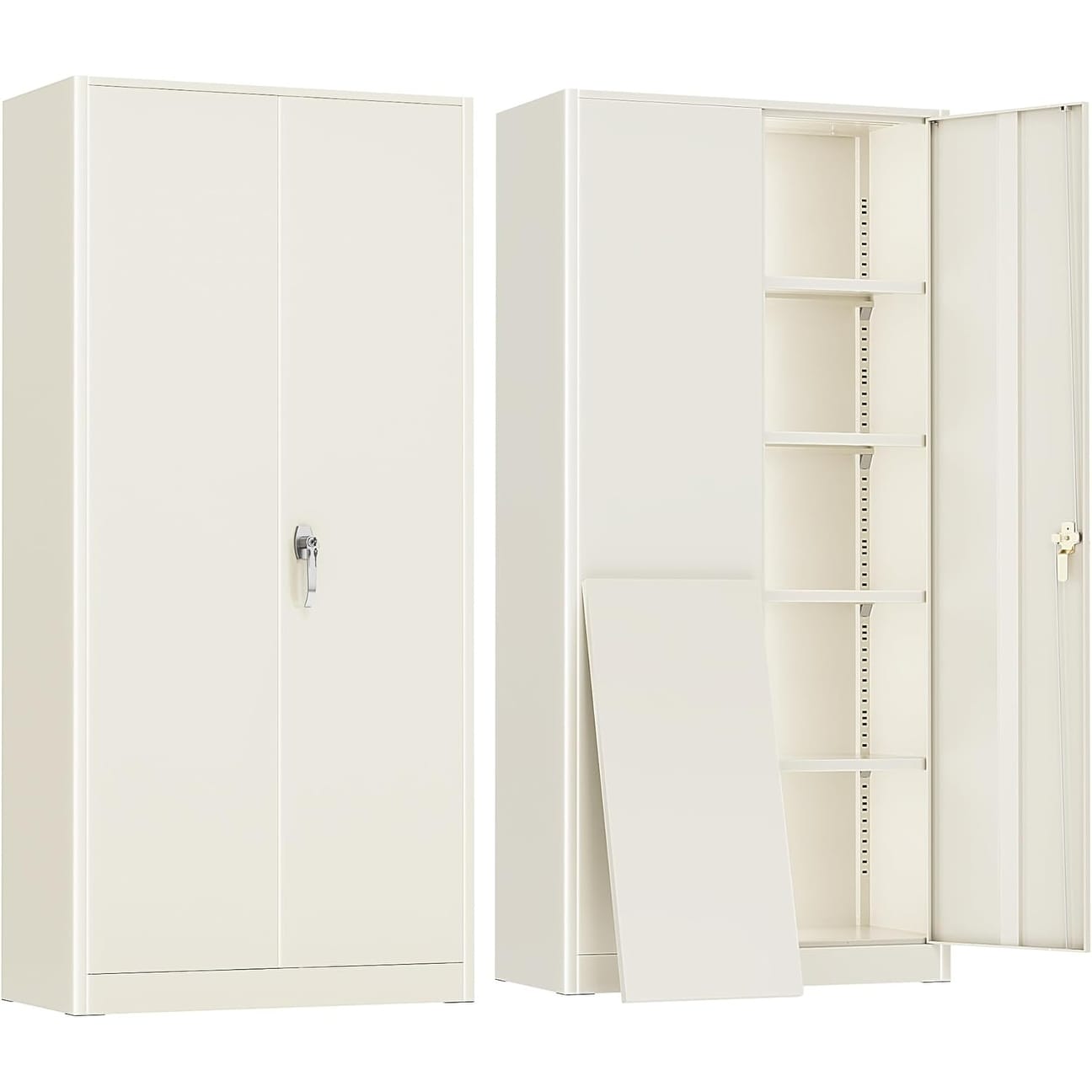 72"H Steel Lockable Storage Cabinet with 2 Doors and 4 Adjustable Shelves for Office, Home, Garage, Gym, School