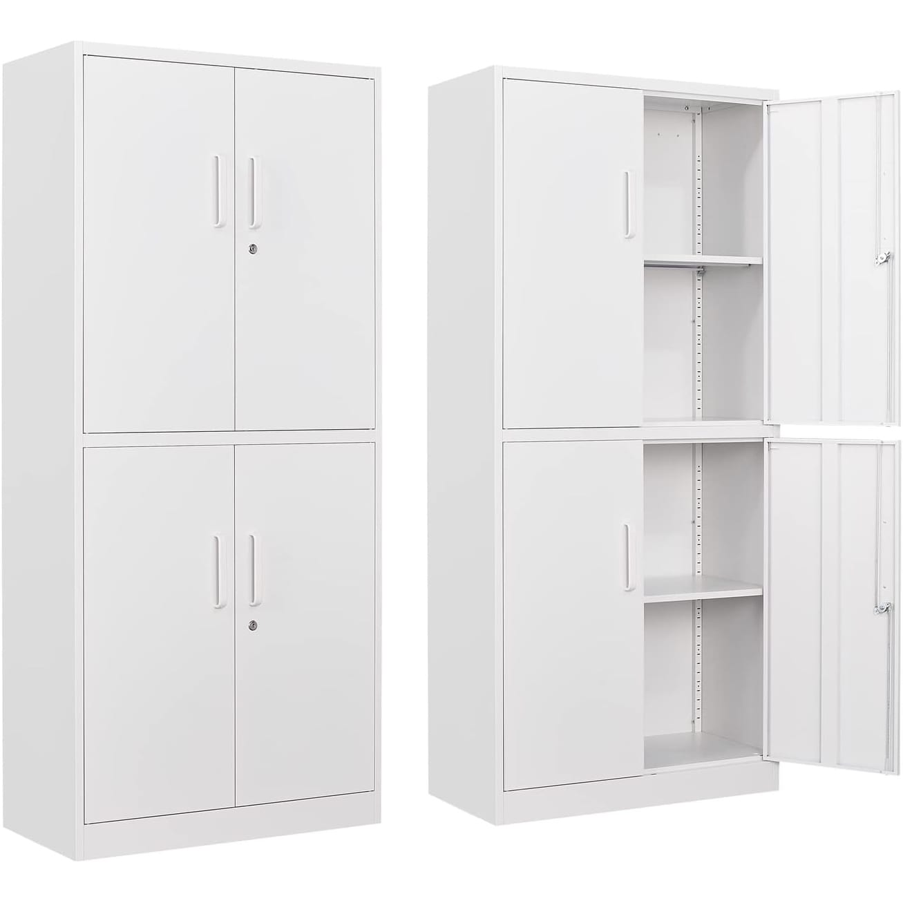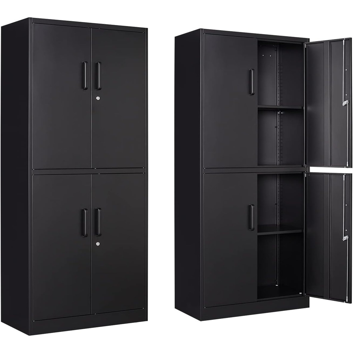 4-Door Metal Storage Cabinet with Adjustable Shelves, 71 Inch Tall Lockable Steel Cabinet for Home, Office, and Garage
