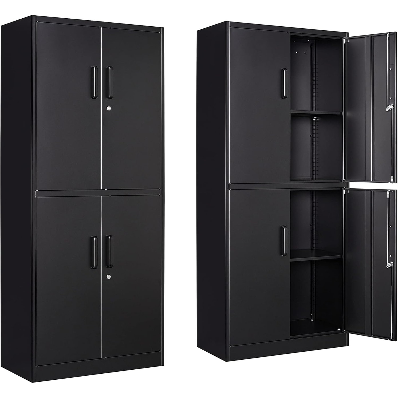 Metal Storage Locking Cabinet, 71 inch with 4 Doors and 2 Adjustable Shelves, Black