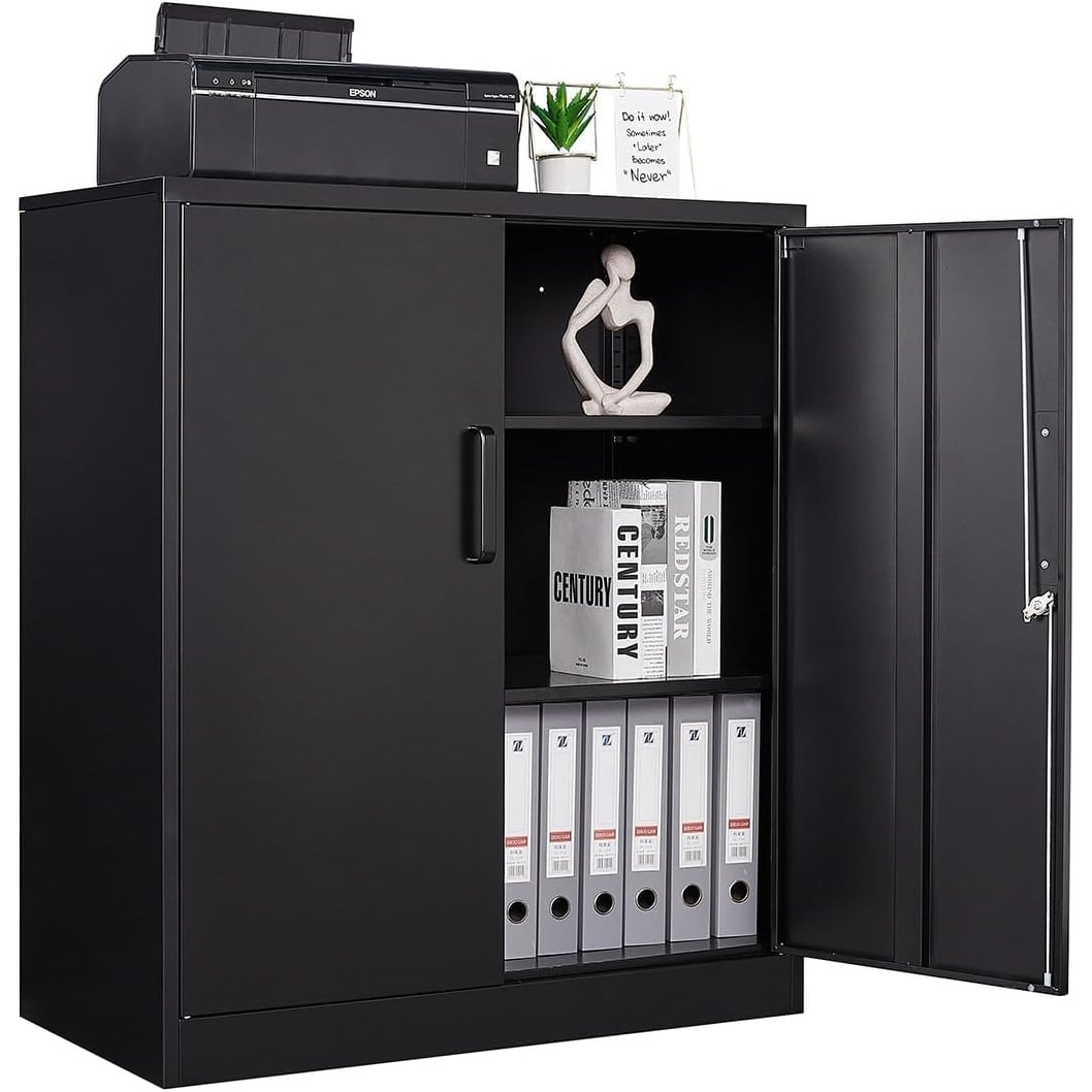 2-Door Steel Storage Cabinet with Adjustable Shelves and Locking Mechanism for Home, Office, or Garage