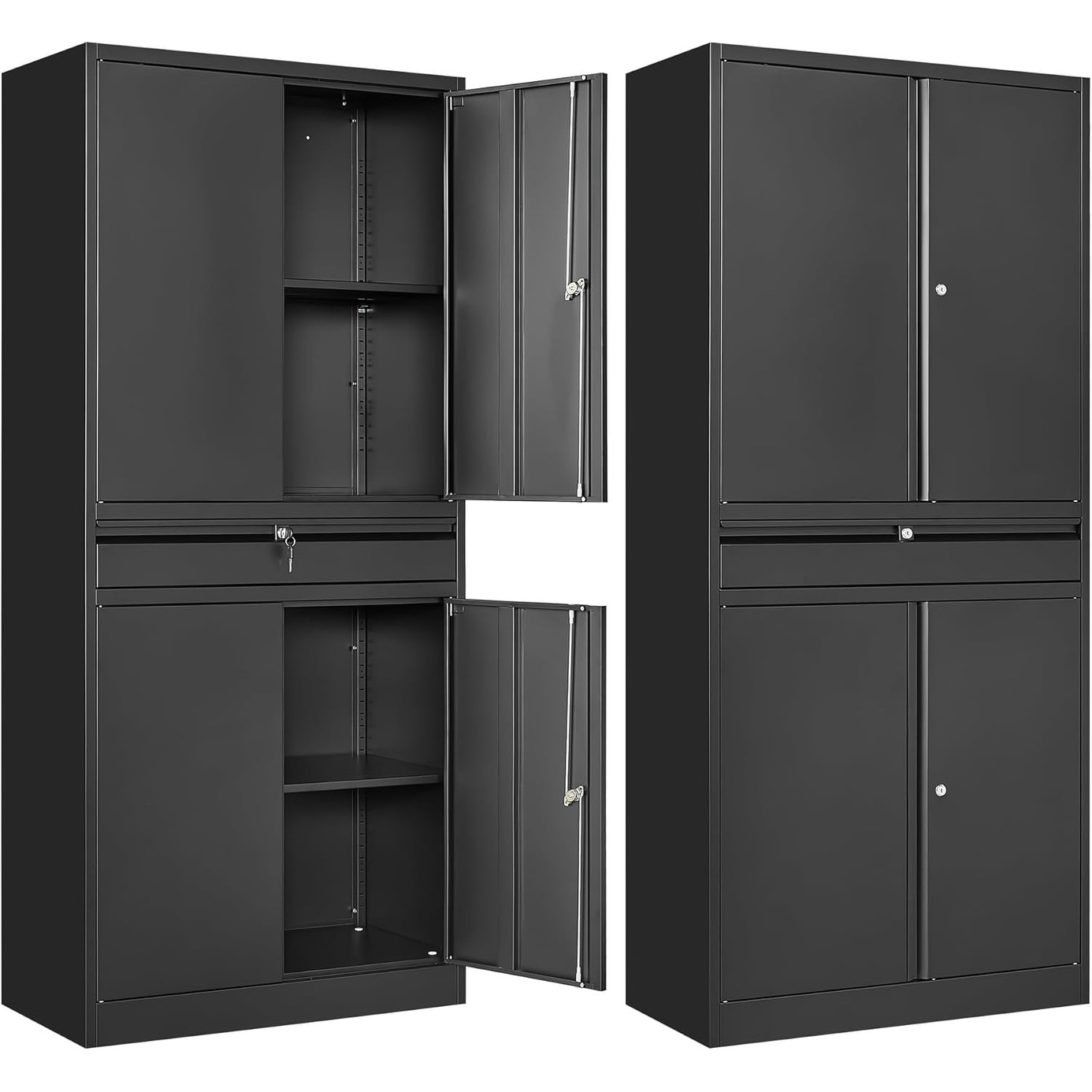 71 Inch Lockable Metal Garage Storage Cabinet with 2 Adjustable Shelves and 1 Drawer