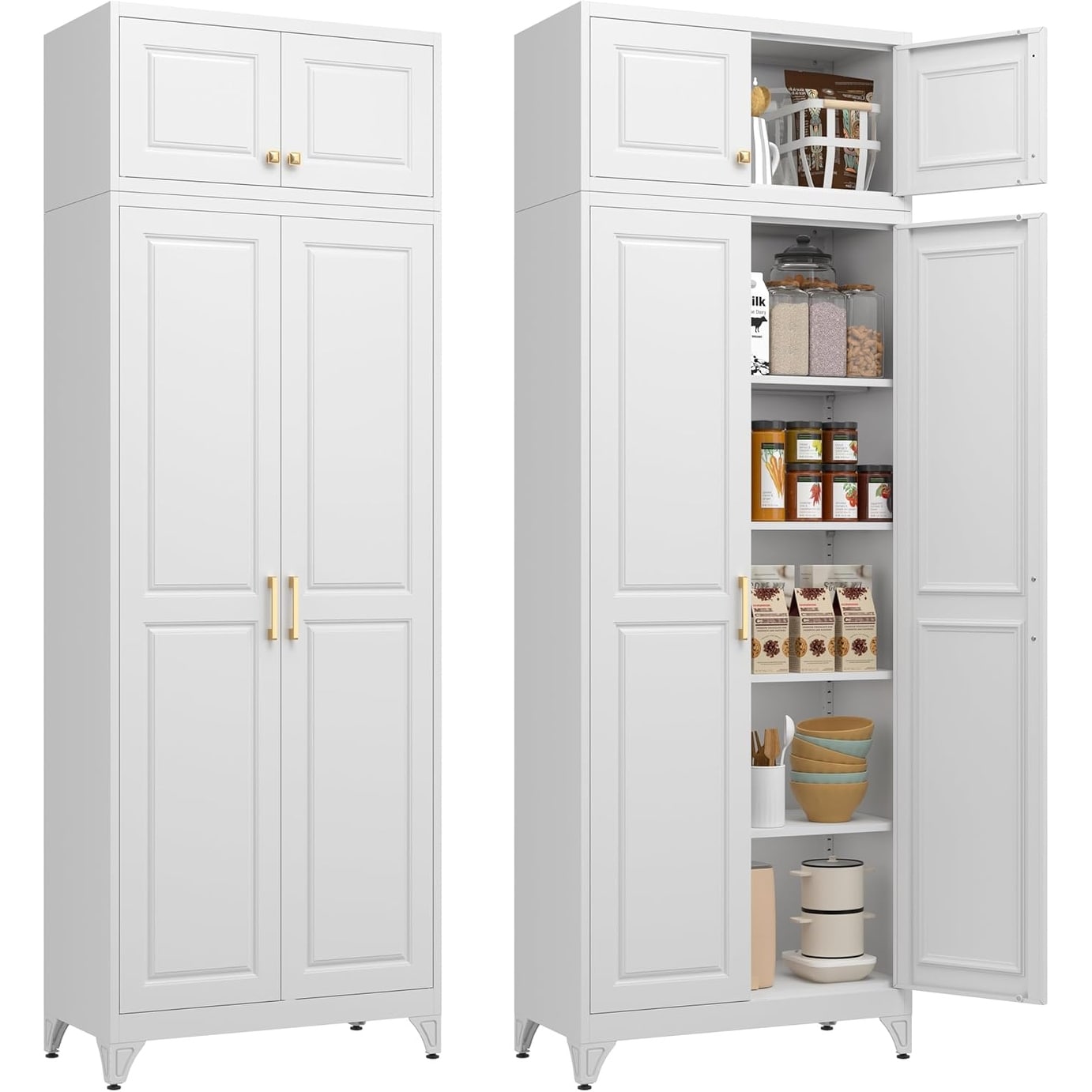 90 Inch Tall White Metal Kitchen Pantry Cabinet with Doors and Shelves, 16D x 32W x 90H, Assembly Required