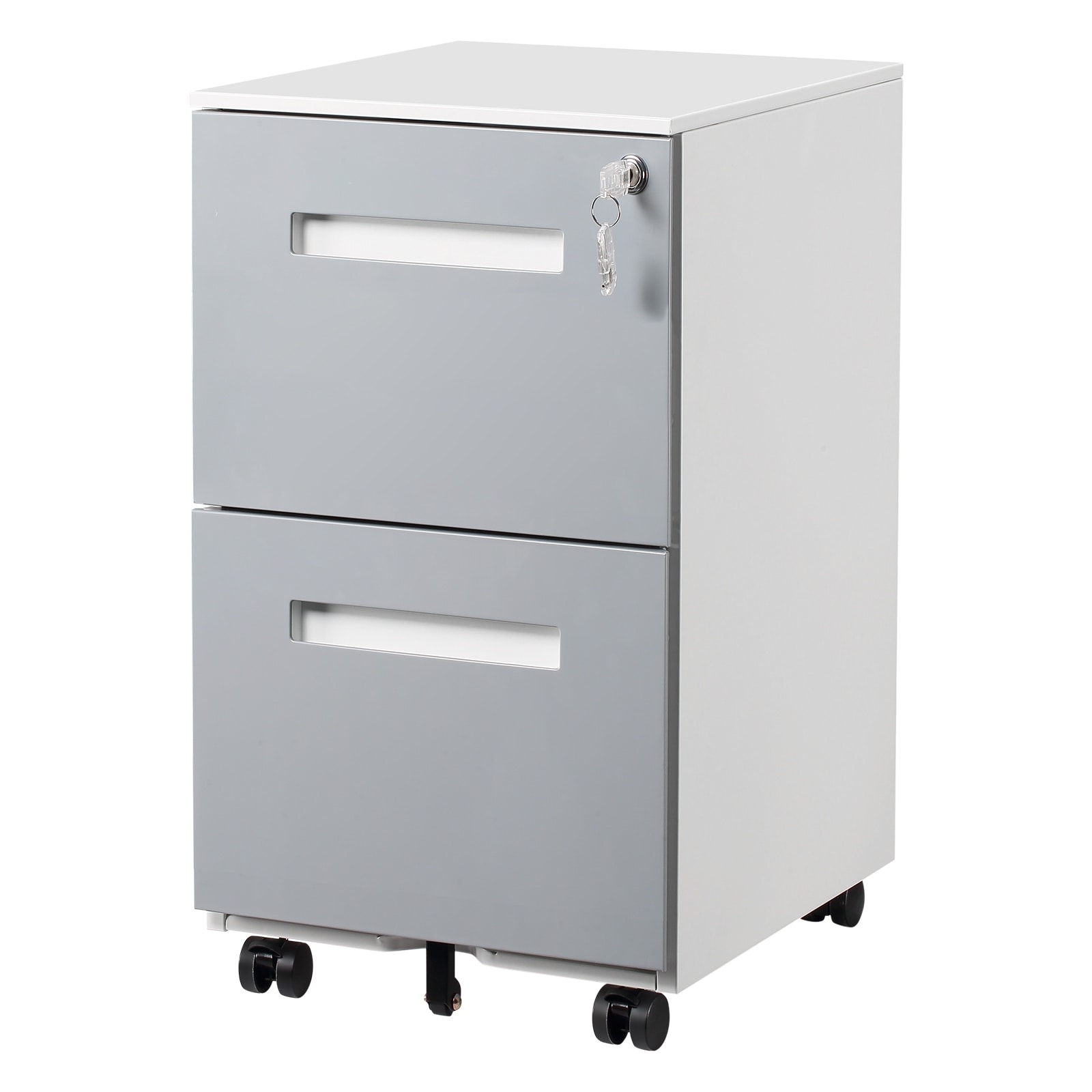 Modern Mobile Locking File Cabinet with 2 Drawers, Removable Hanging Rod and 5 Wheels, for Home Office, Gray