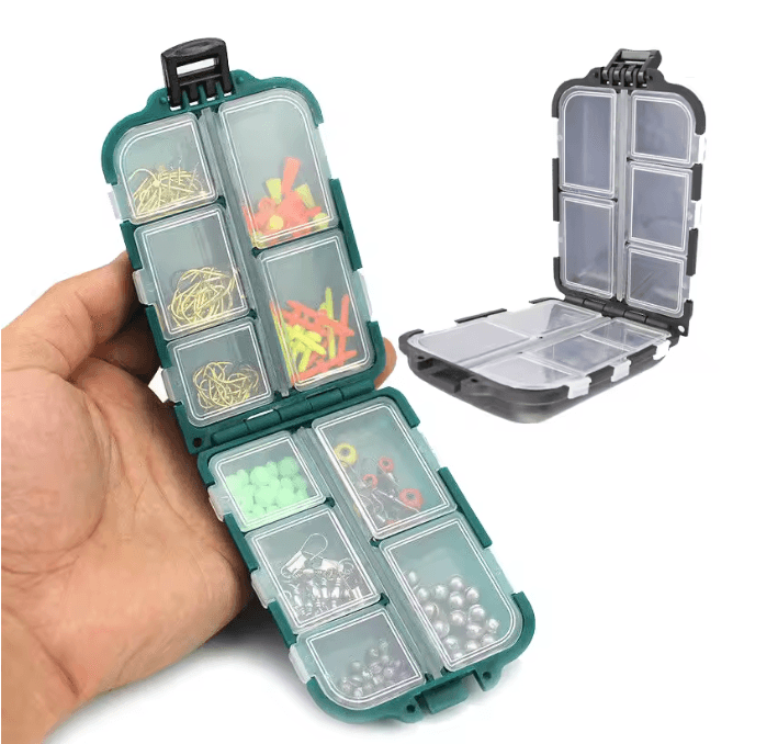 Double Sided Fishing Tackle Box 10 Grid Storage Organizer j