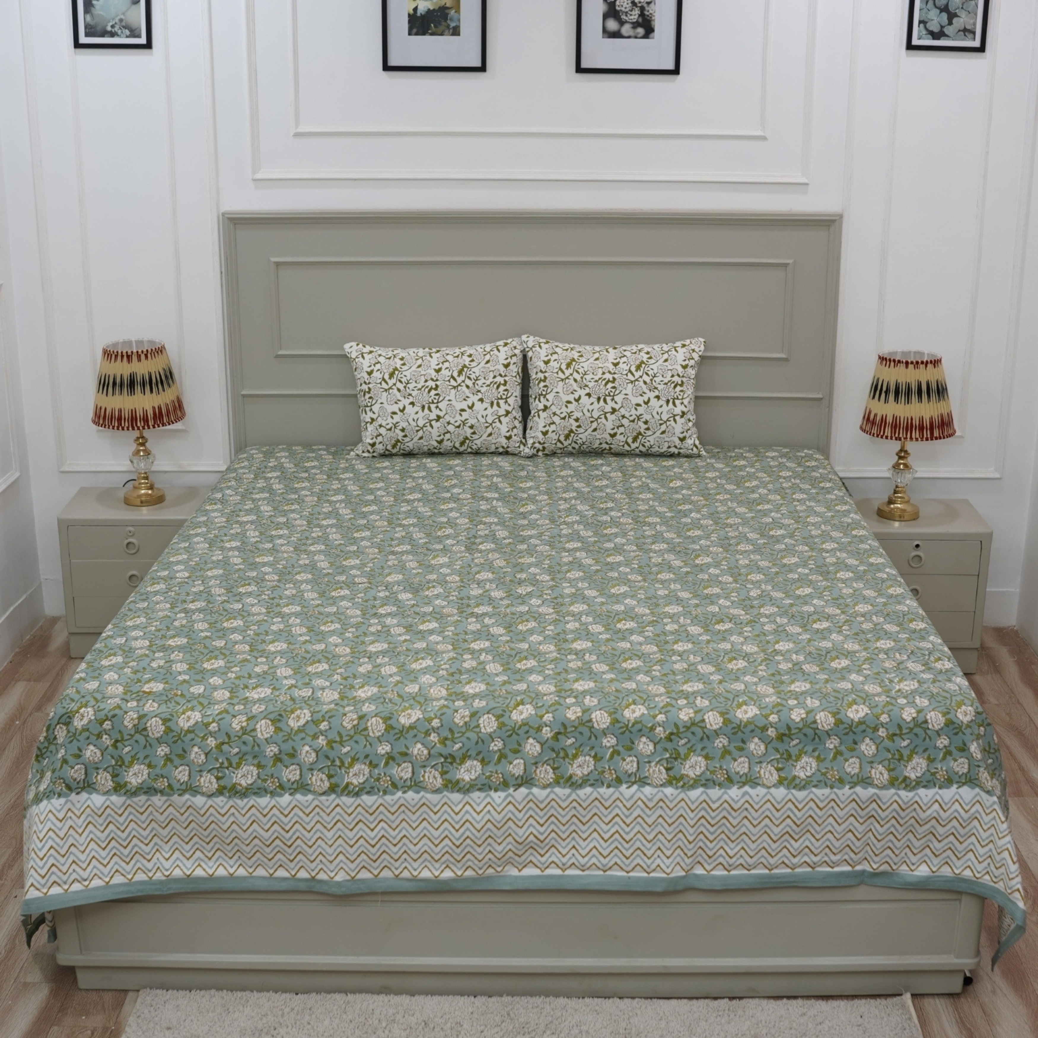 Fabdivine Handmade Block Print Flat Sheet or Bed Sheet Cotton Fabric Floral Home Decor