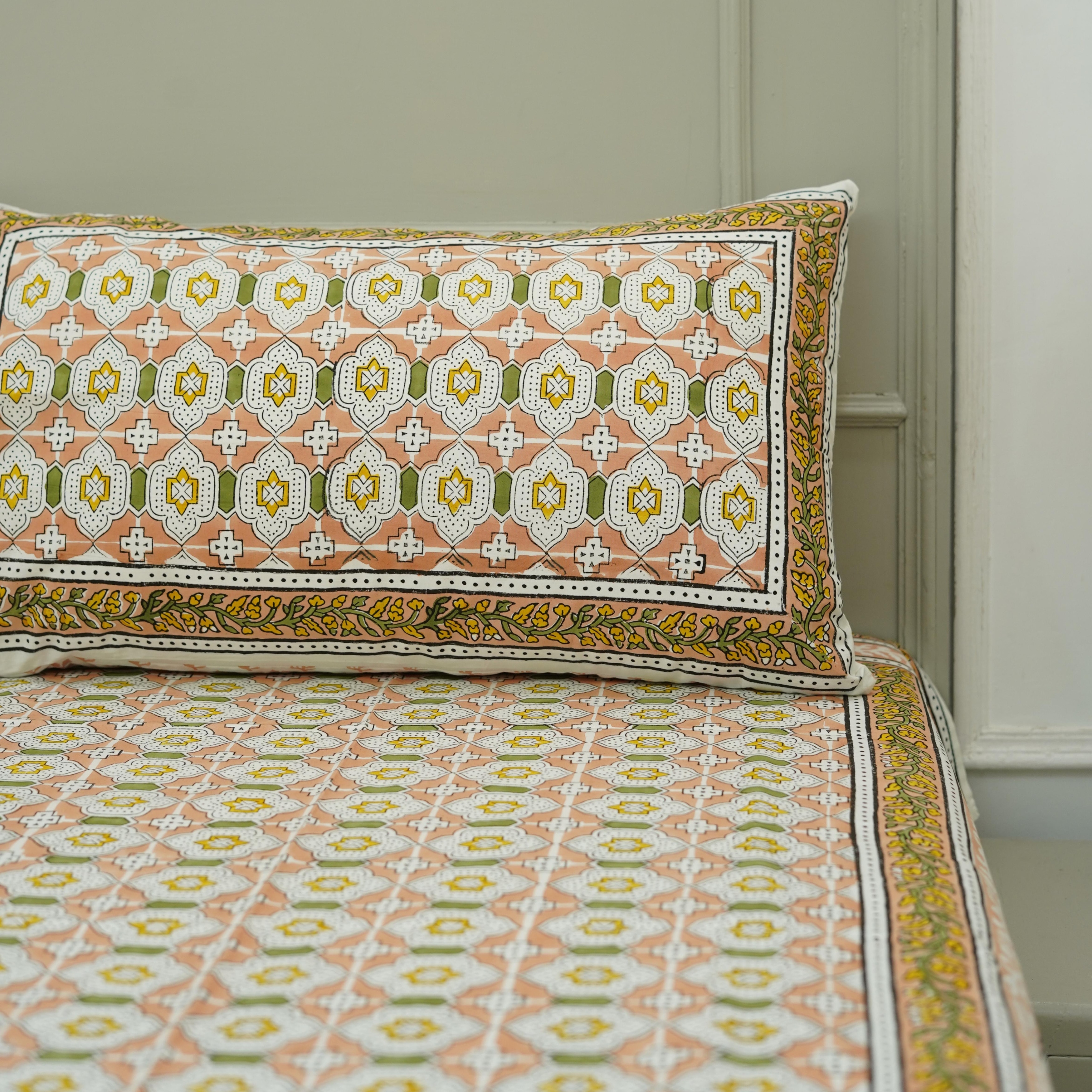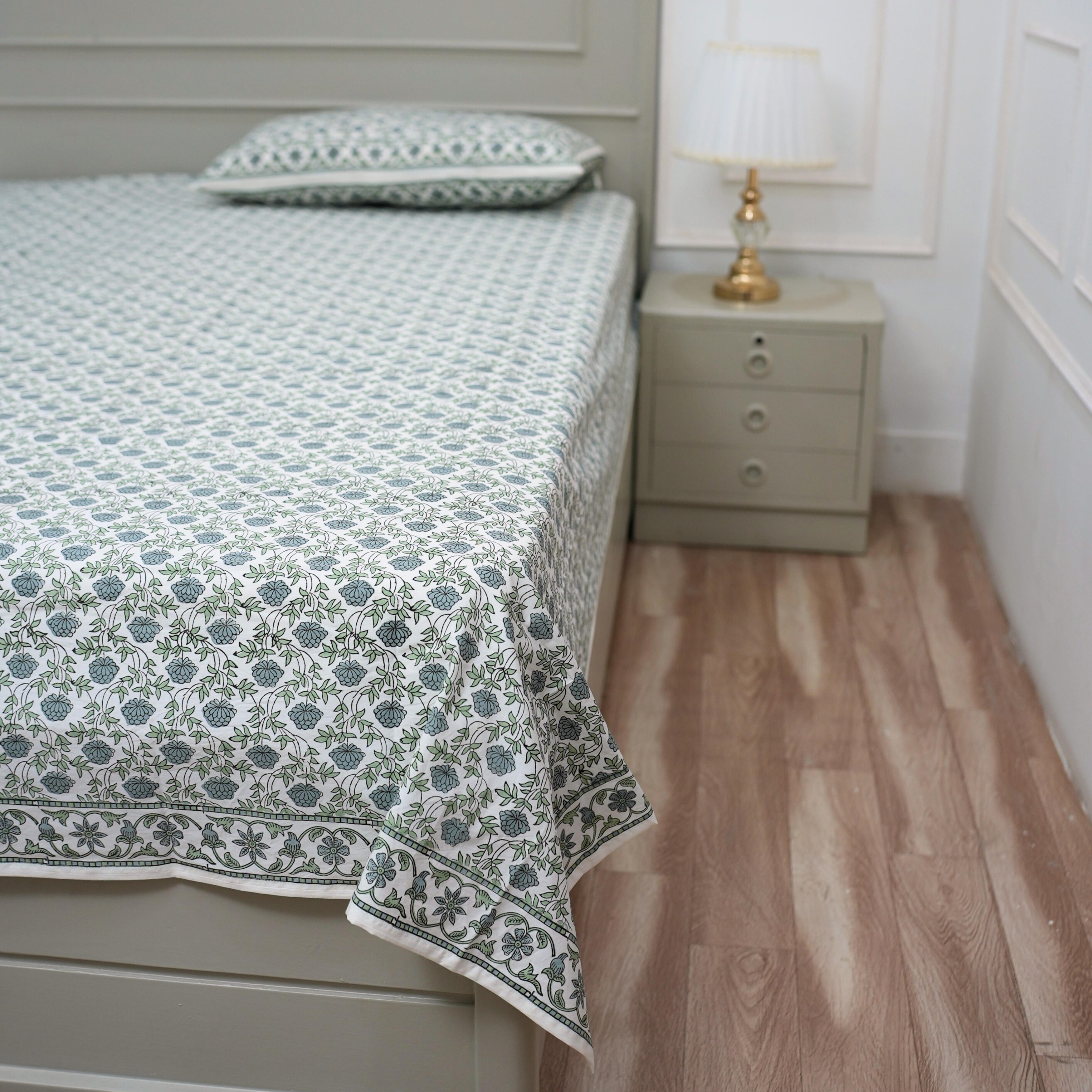 Fabdivine Handmade Block Print Flat Sheet or Bed Sheet Cotton Fabric Floral Home Decor