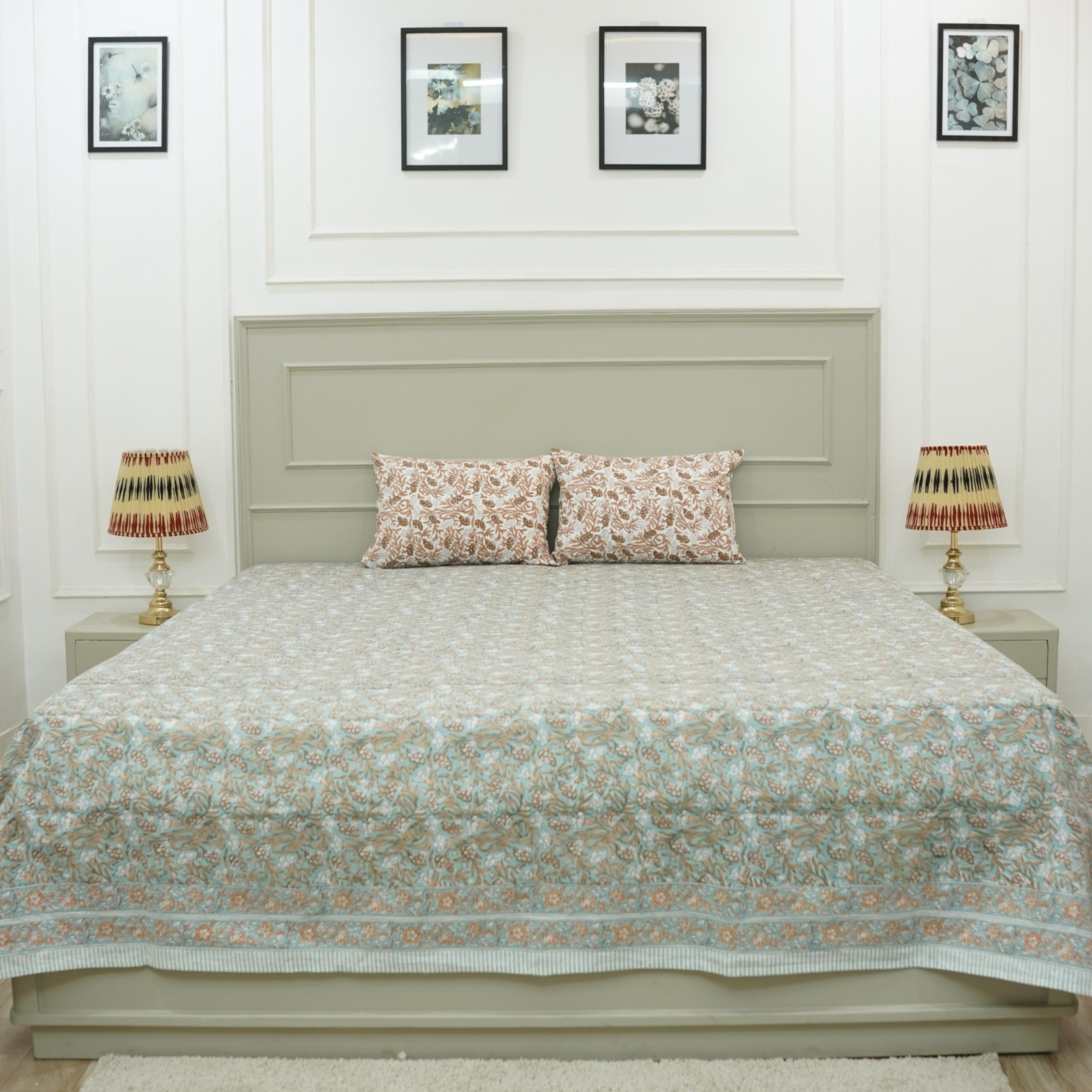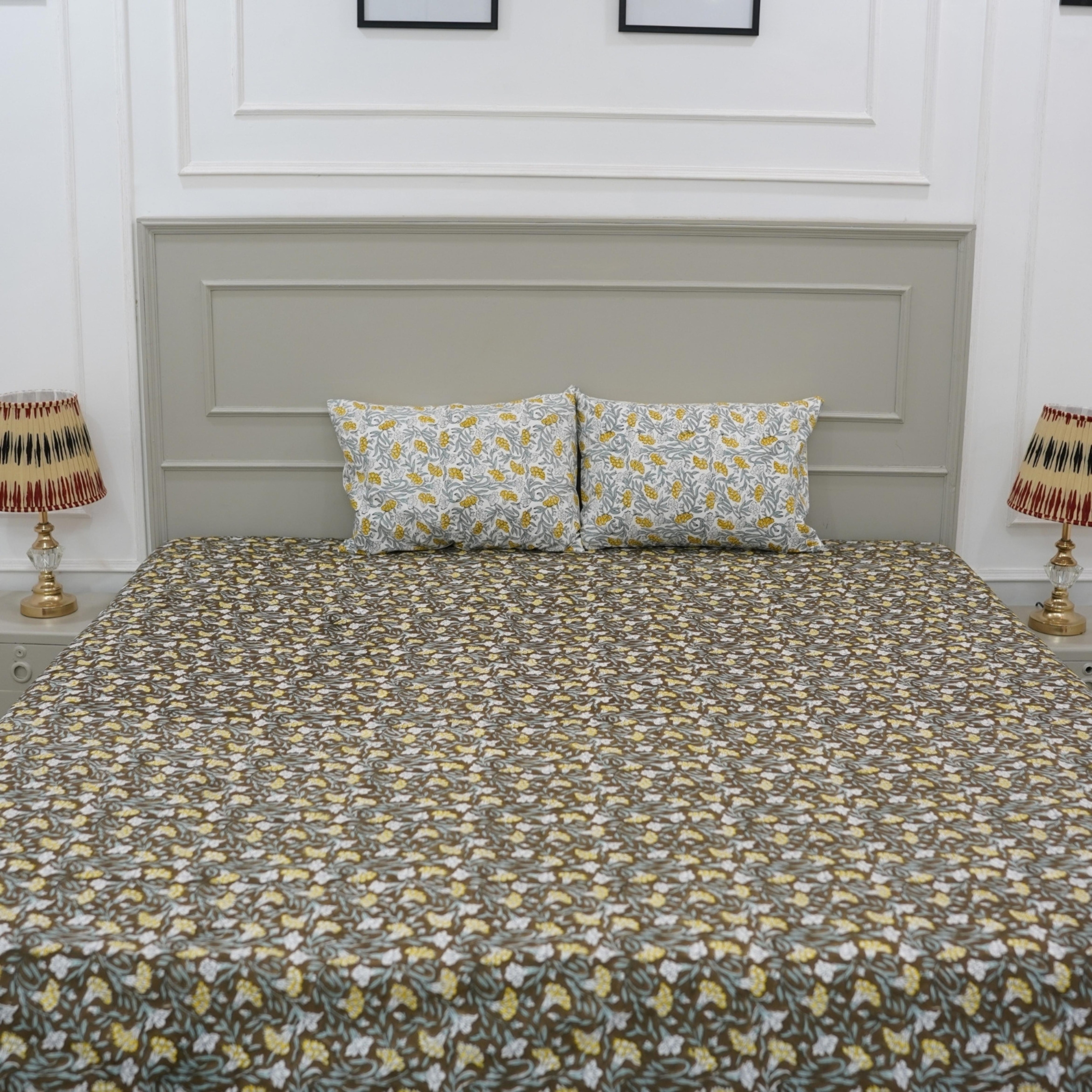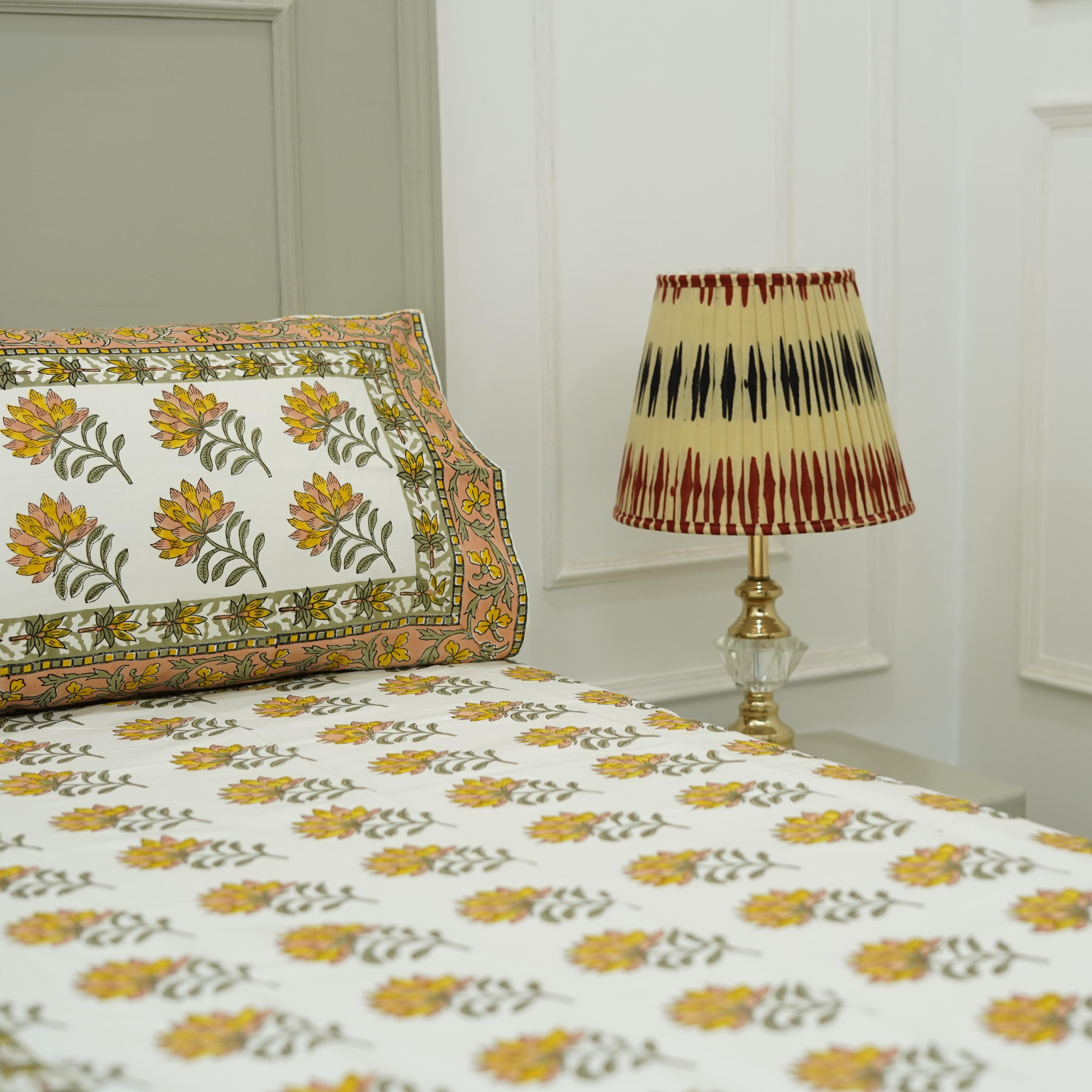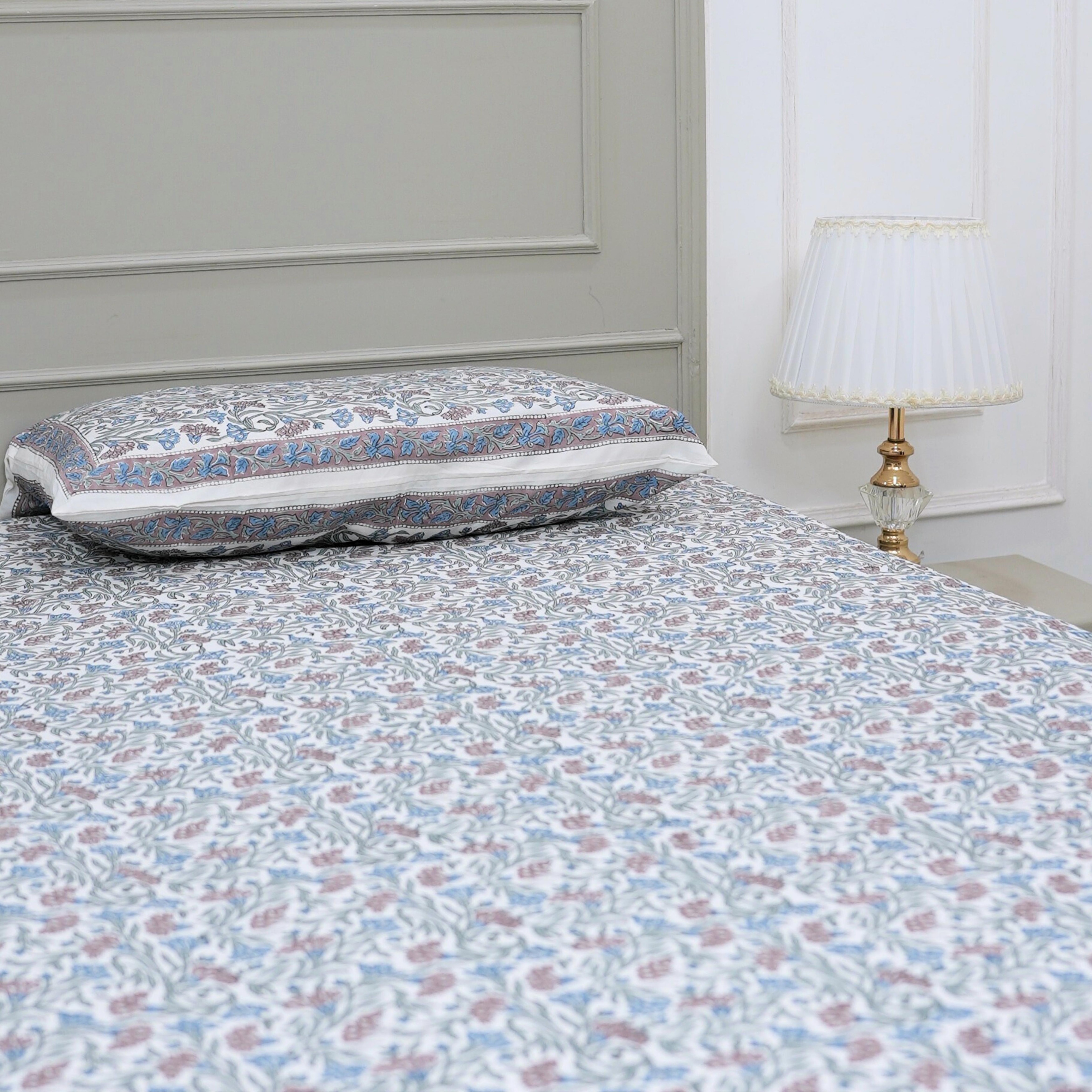 Fabdivine Cotton Hand Block Floral Flat Sheet Bed Room Home Décor Accent Gift