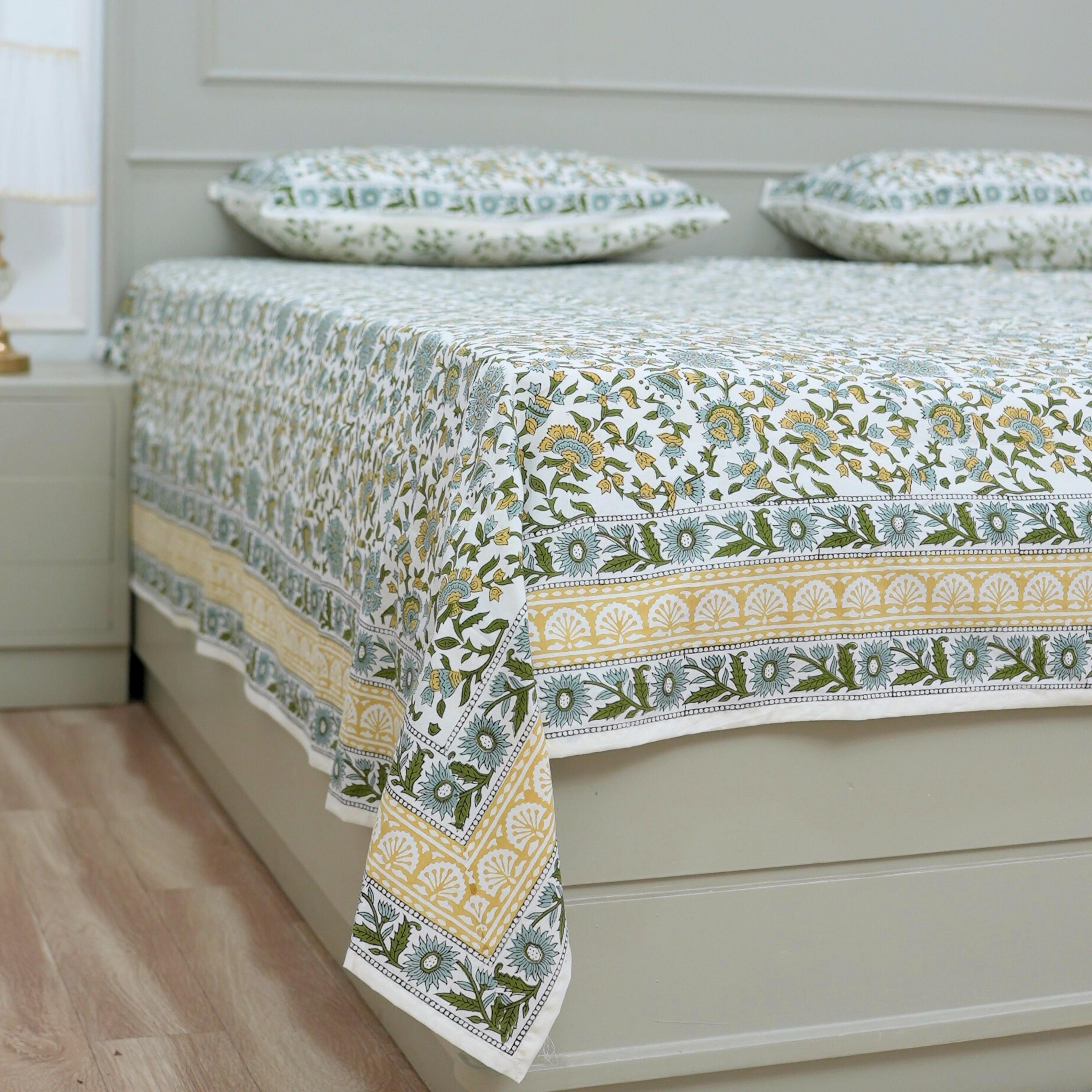 Fabdivine Cotton Hand Block Floral Flat Sheet Bed Room Home Décor Accent Gift