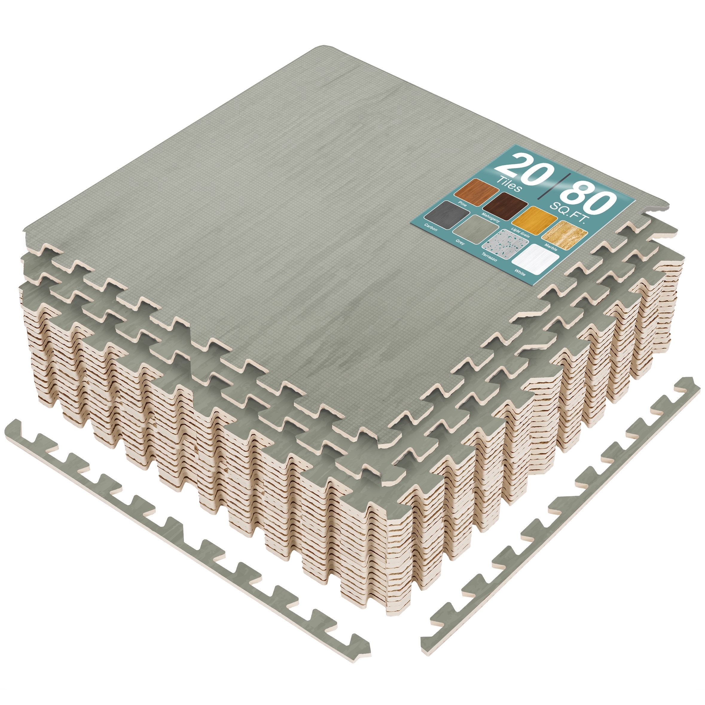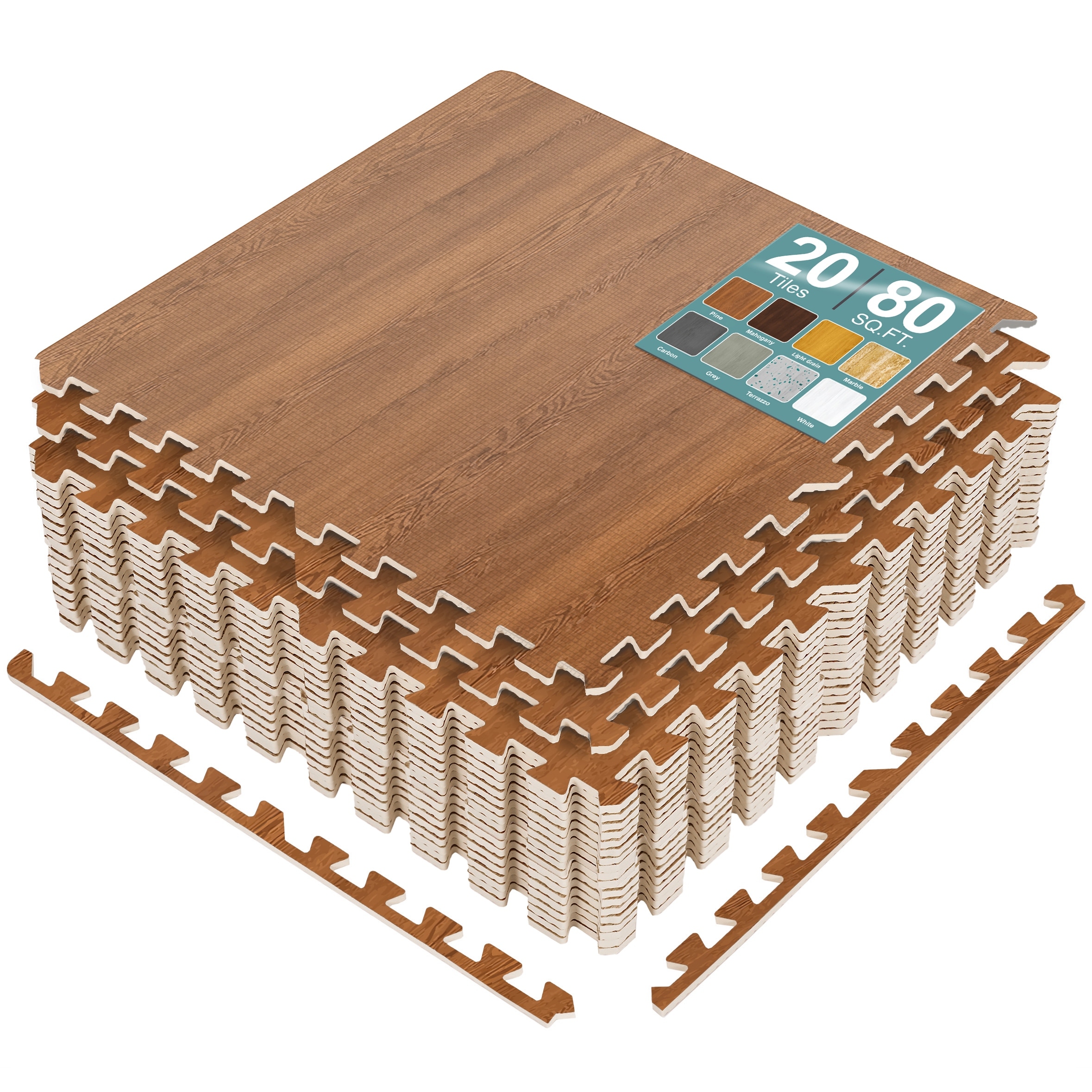 Sorbus 80 Sq. Ft. Wood Grain Floor Tiles Foam Mat EVA Interlocking Mats Tile 3/8-Inch-Thick Wood Puzzle Exercise Mats.