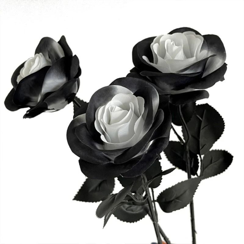 12 Piece Black Red White Artificial Silk Rose Branch Set Long Stem Decorative Flowers black