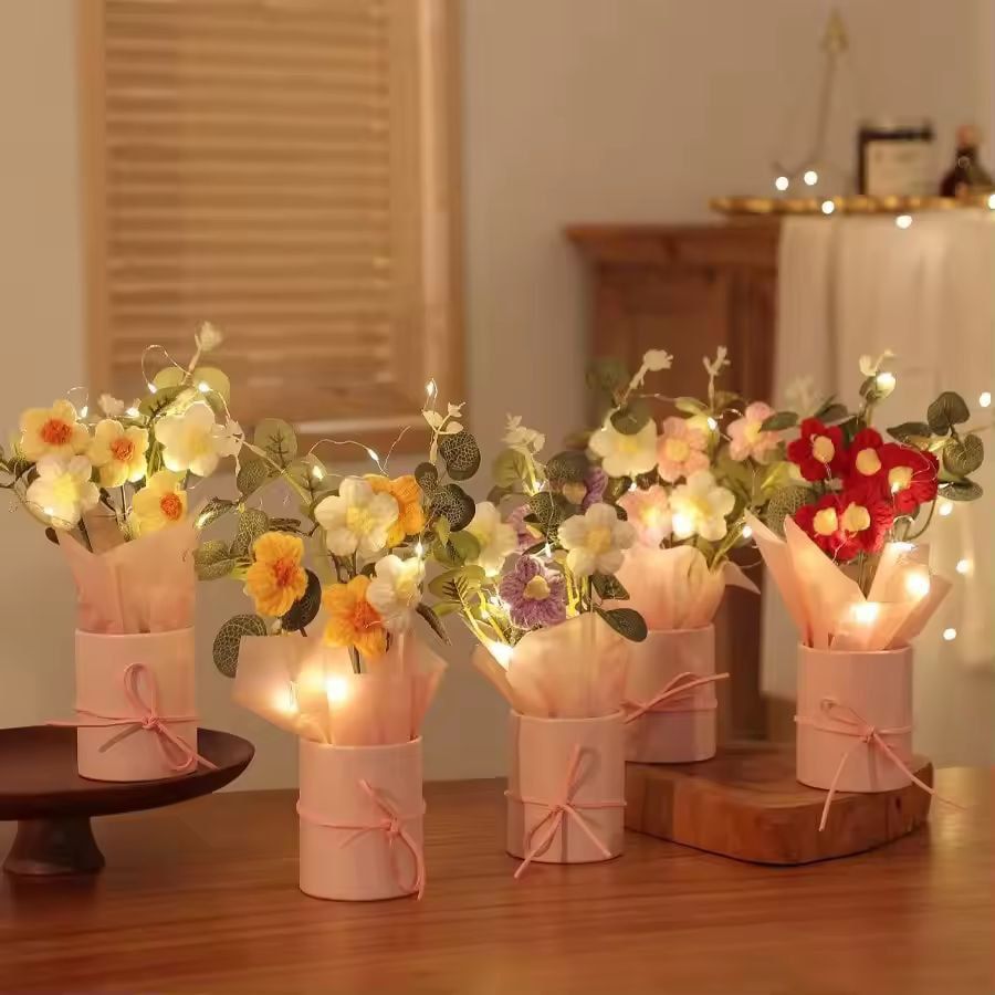 Handmade Crochet Flower Bouquet Everlasting Artificial Yarn Flowers For Home Decor & Gifts purple
