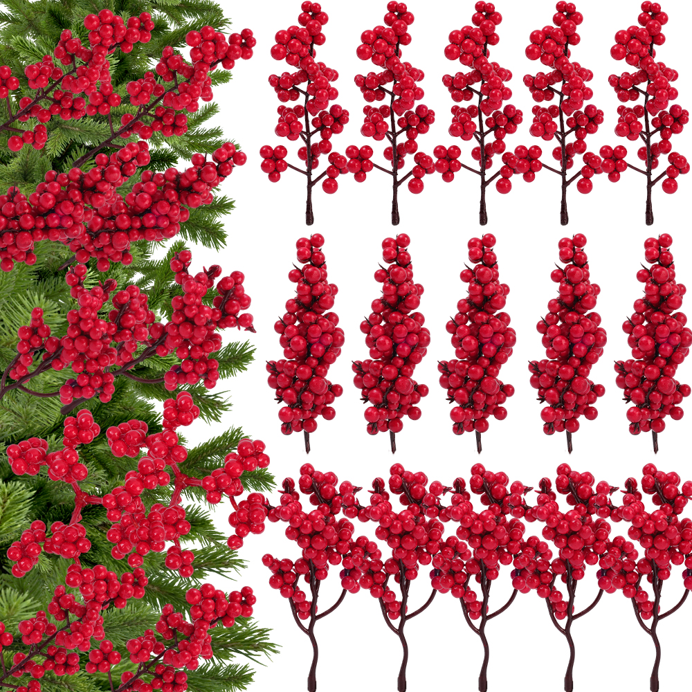 Cherry Stamen For Home Decor, Christmas Decoration Red Berry Branches, Wedding Wreath Flowers Accessory New Year Gift type c 50pcs