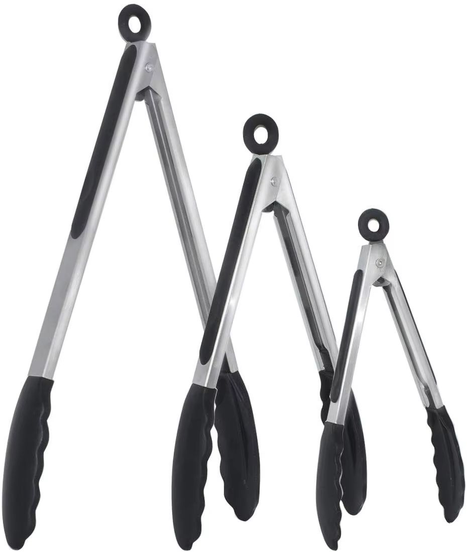 Silicone Tip Stainless Steel Locking Kitchen BBQ Tongs In Multiple Sizes 12 Inch Red