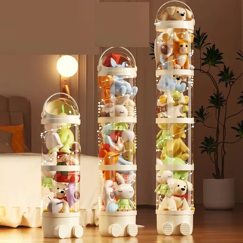 Doll Storage Box For Toys Organization, Plush Toy Storage Tube, Transparent Plastic Stuffed Storage Barrel Organizer white