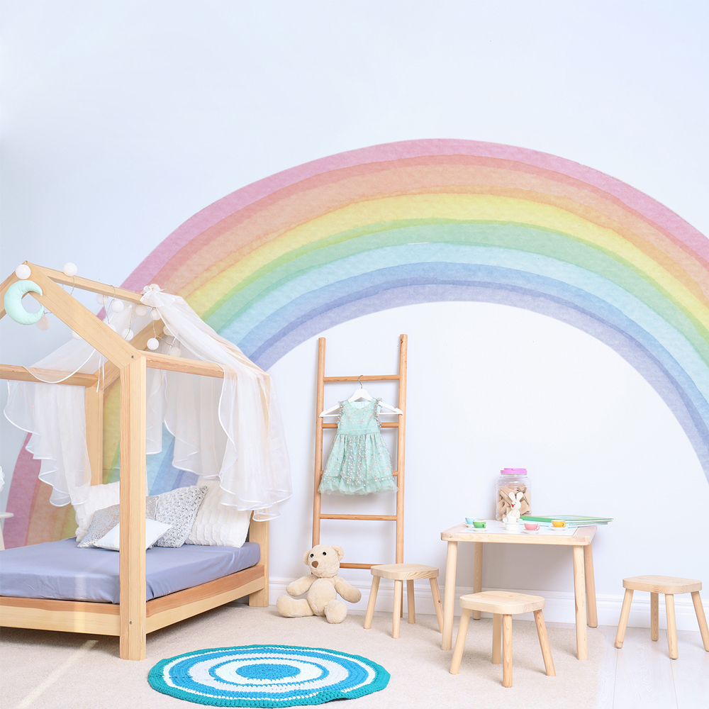 Large Rainbow Pastel Wall Stickers Mural, Nursery Kids Room Wall Decals, Baby Shower Playroom Decorations, Baby Boy Girl rnw02 m as Picture Shows