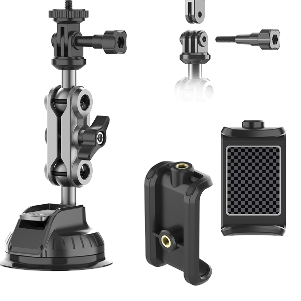 Camera Holder Stand With Phone Bracket For Dash Cam, GPS Driving DVR, And VLOG Recording Camera Holder Stand With Phone Bracket For Dash Cam, GPS Driving DVR, And VLOG Recording