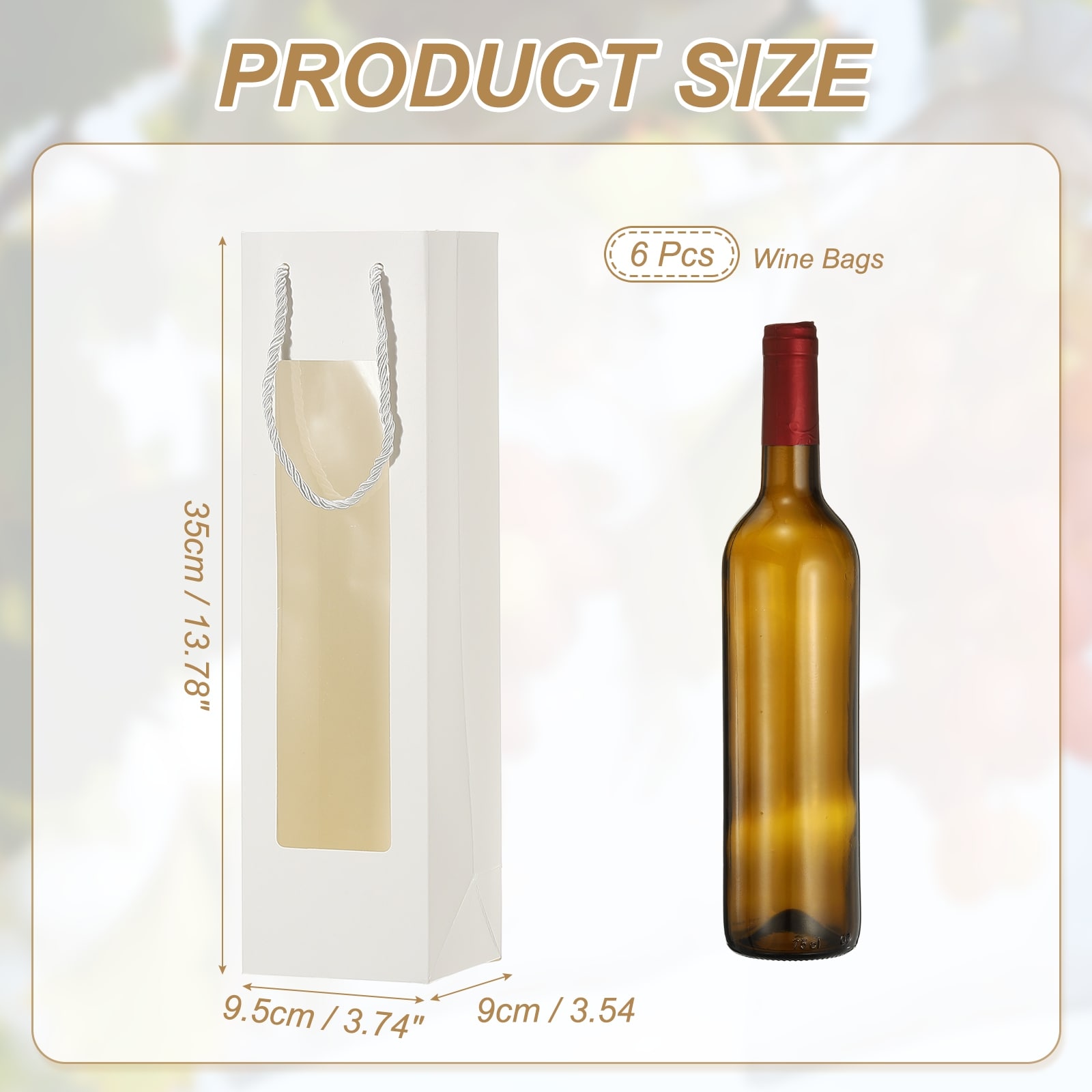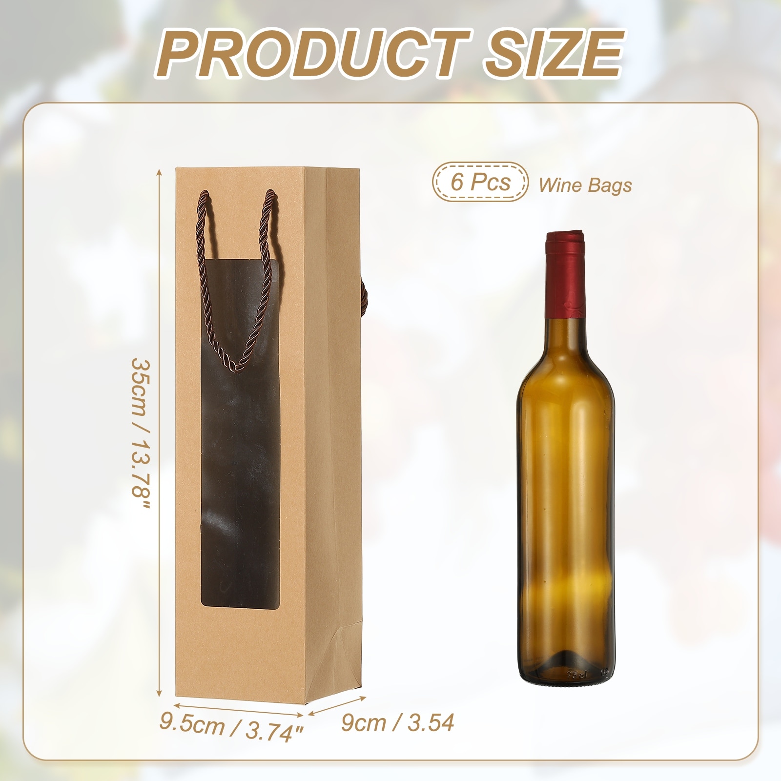 Wine Gift Bag, Bottle Kraft Paper Wine Bags Gift Tote Carrier Bottle Bag with Handles Bulk - 13.7" x 3.7" x 3.5"