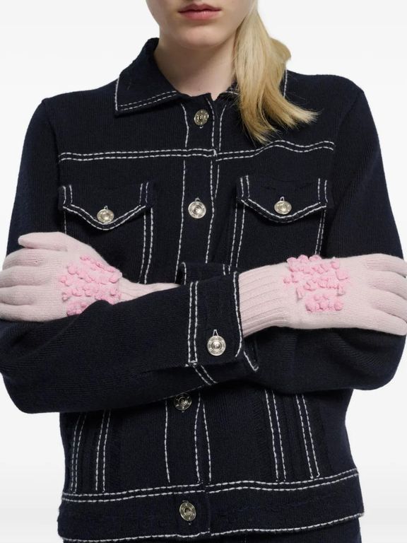 Cashmere Flower-Embellished Gloves - Black - Barrie Gloves