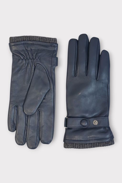 Italian Leather Warm Wool Lining Winter Bike Riding Driving Casual Gloves - Blue - Infinity Leather Gloves