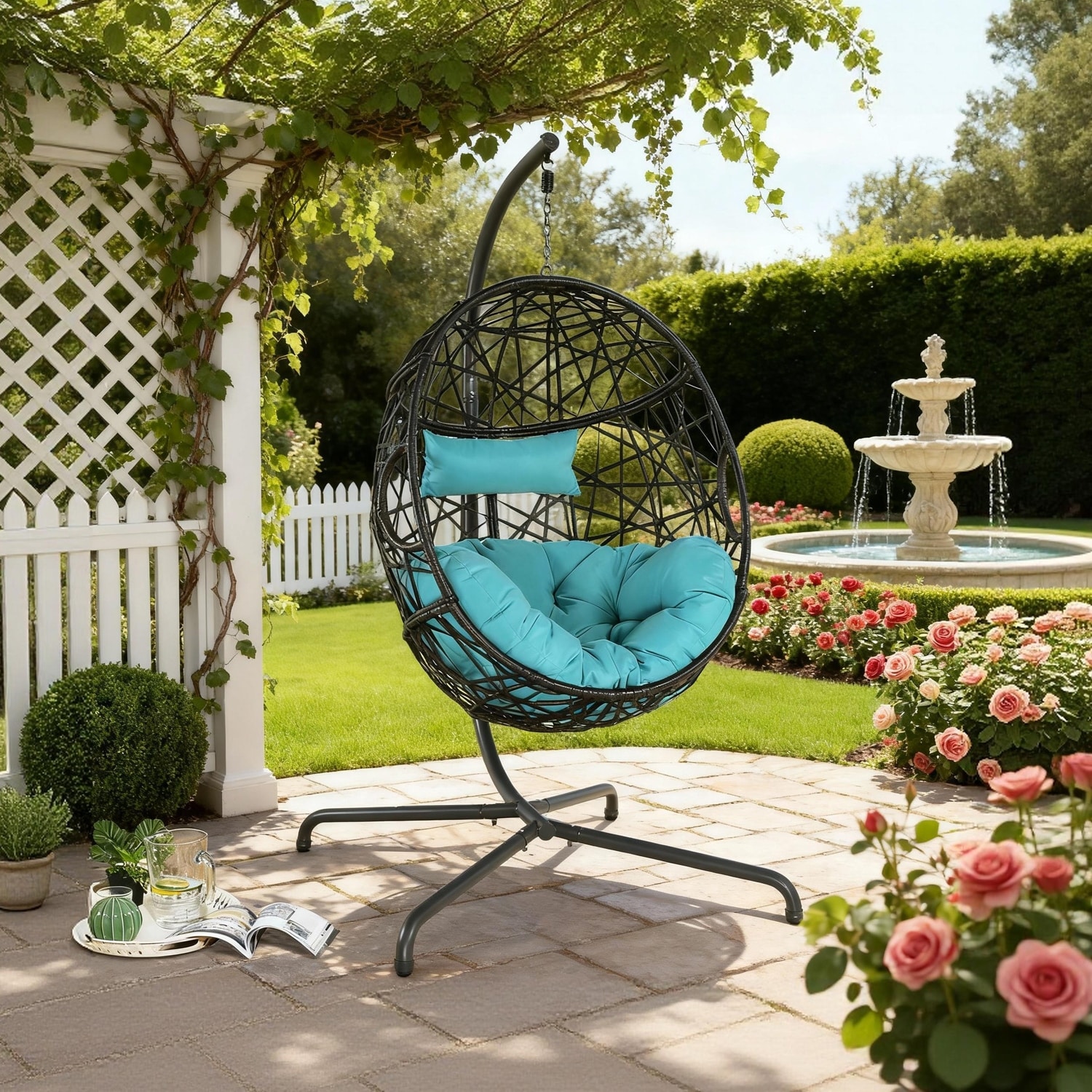 Outdoor Egg-shaped Hanging Chair with Stand,Patio Egg-shaped Swing Chair,Indoor Rocking Chair,Outdoor Hammock Egg-shaped Chair