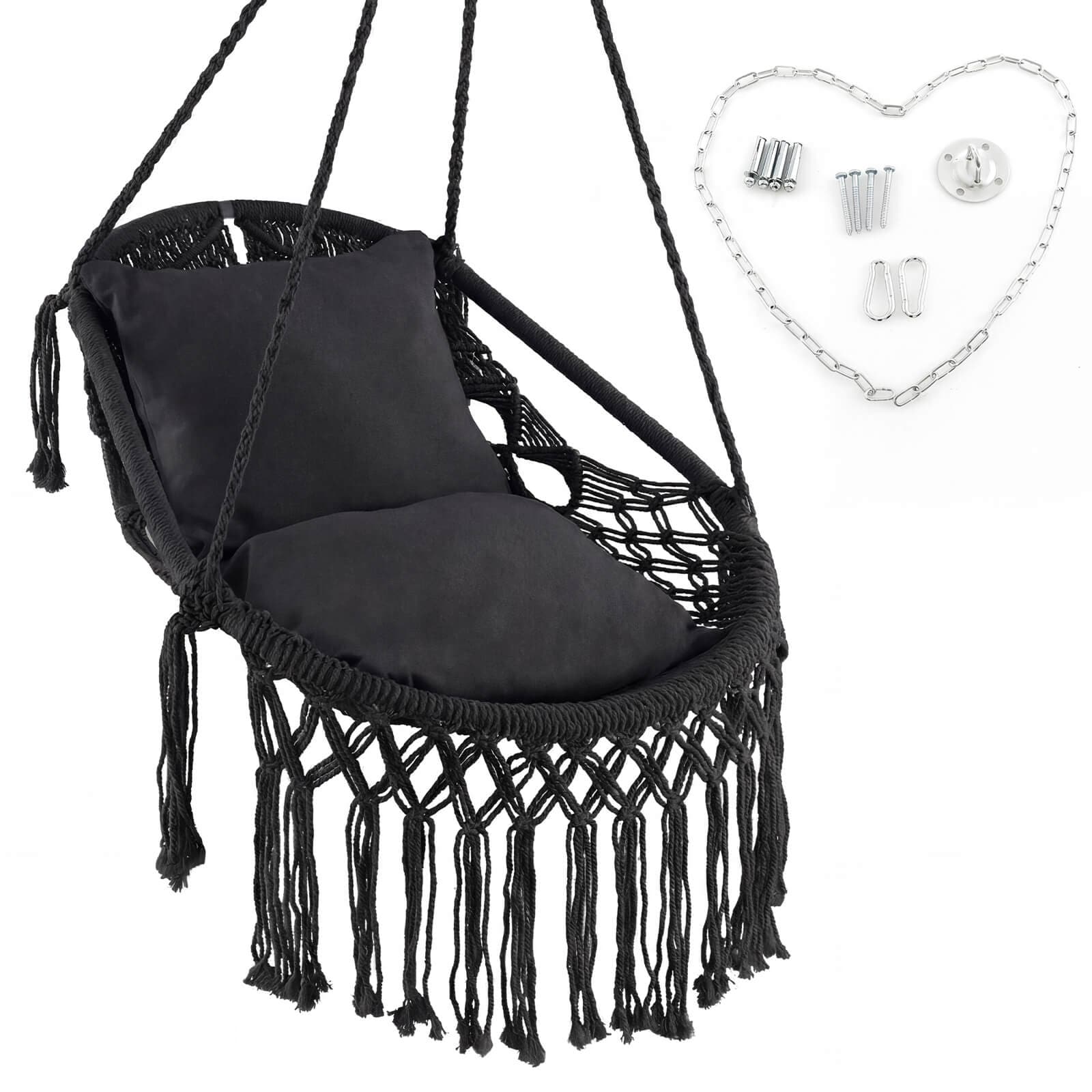 Steel Frame 2-Person Macrame Hammock Chair with Includes Cushion and 704lb Capacity