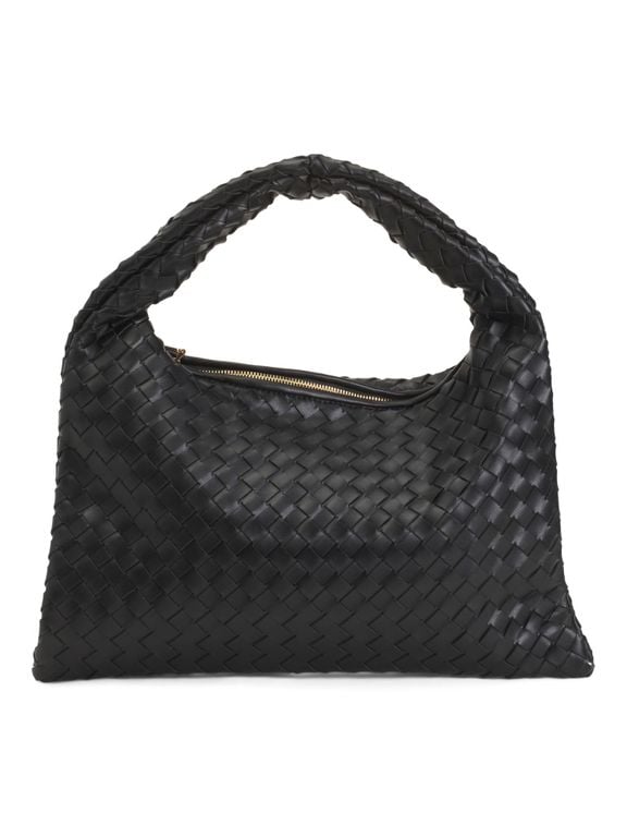 Leather Woven Large Hobo For Leather - Black - Tj Maxx Hobo Bags