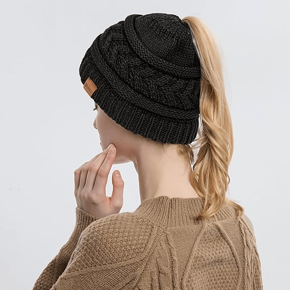 Ponytail Beanie For Winter Warmth Without Ruining Your Hairstyle Beige