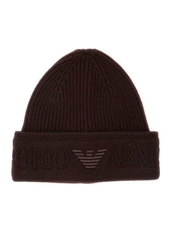 Beanie With Maxi Logo Embroidery On The Front - Brown - Emporio Armani Hats